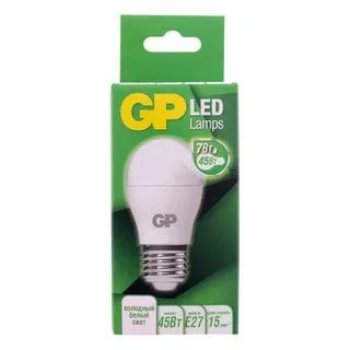 Светодиодная лампа GP - источник основного или локального освещения в помещении. Также используется для светильников, ночников, подходит для декорирования и создания световых зон. Низкое энергопотребление, срок службы и безопасность — главные преимущества светодиодных ламп.Лампа имеет форму шара и подходит к любым осветительным приборам, оснащенным цоколем Е27. Благодаря встроенной защите лампа не чувствительна к перепадам напряжения (рабочий диапазон – 220-240В). Свет холодный белый, без мерцания. Лампа создает мягкое естественное освещение, оптимальное для жилых помещений.Благодаря низкому уровню энергопотребления светодиодные лампы экономичнее классических ламп накаливания. Так, лампа мощностью 7Вт по уровню свечения эквивалентна обычной лампочке в 45 Вт. Срок службы составляет 15 лет при среднем использовании прибора по 3 часа в сутки.