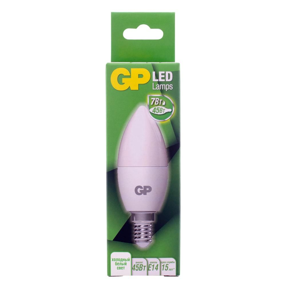 Светодиодная лампа GP мощностью 7Вт применяется для создания локального, акцентного освещения, также подходит для декорирования и создания световых зон. Низкое энергопотребление, срок службы и безопасность — главные преимущества светодиодных ламп.Лампа имеет классическую форму свечи и подходит к любым осветительным приборам, оснащенным цоколем Е14. Благодаря встроенной защите лампа не чувствительна к перепадам напряжения (рабочий диапазон – 220-240В). Свет холодный, комфортный для глаз, без мерцания.Температура эксплуатации – от +40 до – 10 градусов.Лампа мощностью 7Вт по уровню свечения эквивалентна обычной лампочке в 45 Вт. Срок службы составляет 15 лет при среднем использовании прибора по 3 часа в сутки.Повсеместное использование светодиодных ламп в жилом или коммерческом помещении позволяет уменьшить расходы на электроэнергию на 80-90%.