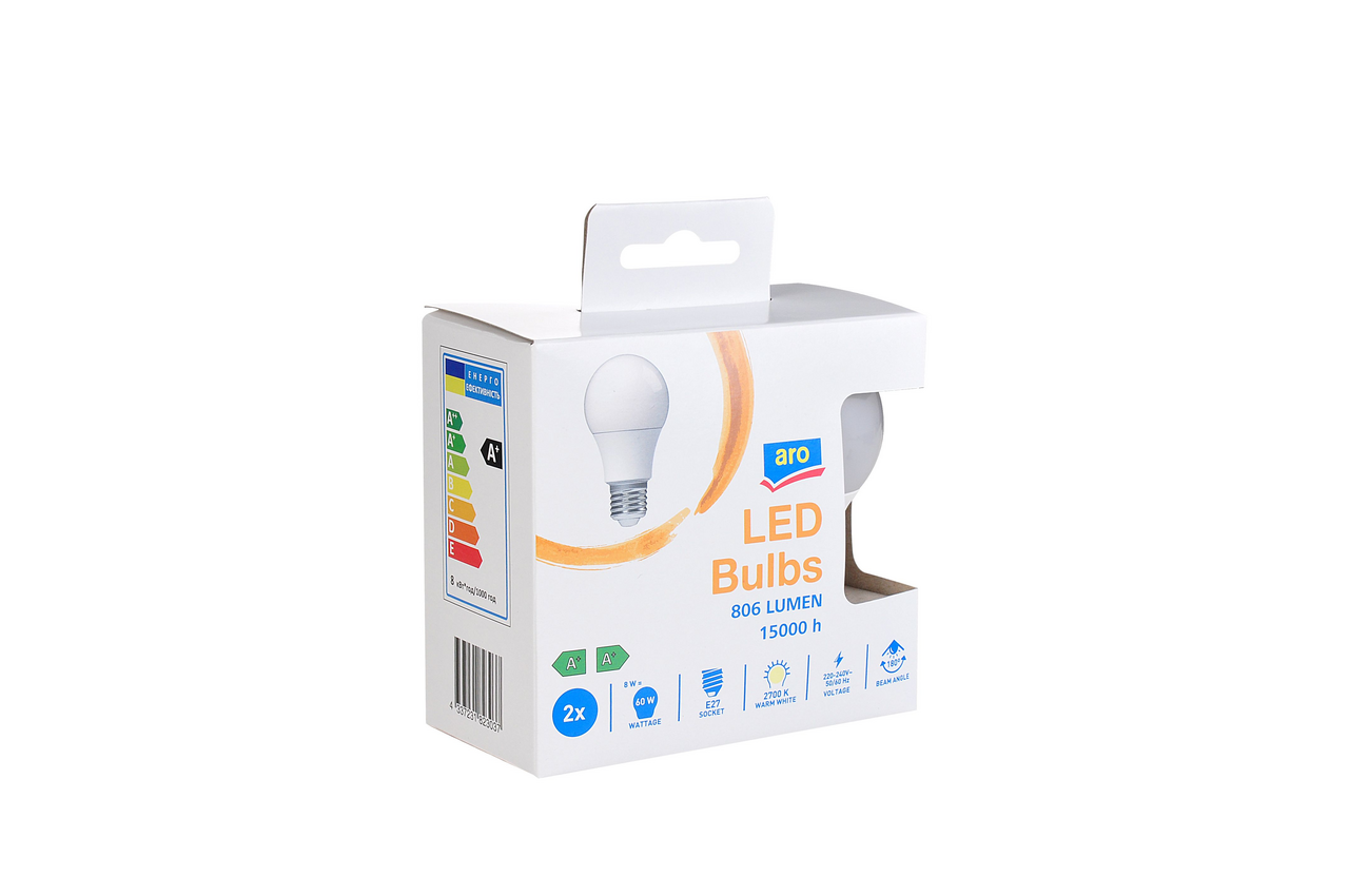 aro Лампа E28 Led 8.5Вт теплый свет груша , 2шт