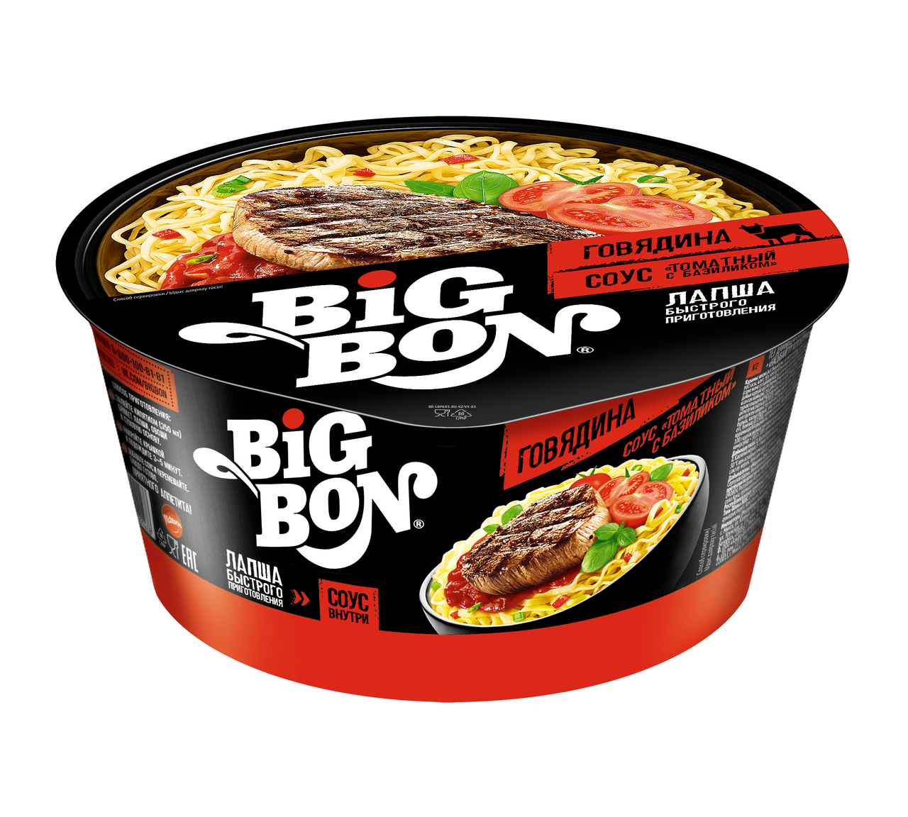 Лапша быстрого приготовления Big Bon говядина-томат-базилик, 85г