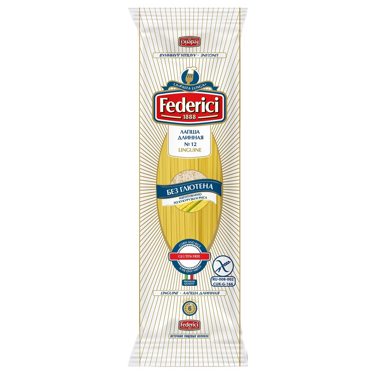 Макароны лапша Federici Linguine №12 длинные из кукурузы и риса без глютена, 400г