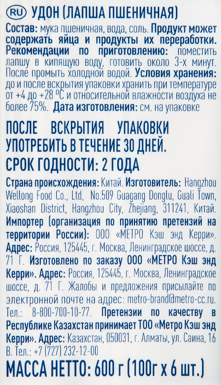 Лапша Metro Chef Удон, 600 г – неотъемлемый компонент многих японских блюд. Лапша станет отличным вариантом, когда хочется побаловать себя чем-то вкусным и легким, но нет времени на приготовление сложных блюд. Она отлично сочетается с морепродуктами и свежими овощами, с птицей и всеми видами мяса. Удон особенно хорош в супе мисо, а также в поджаренном виде в качестве гарнира к сашими. Лапша подается как холодном виде, так и в горячем. Японцы считают, что в холодном виде этот продукт освежает в жаркую погоду, а в прохладное время года нет ничего лучше горячего удона.