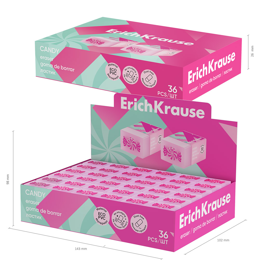 Ластик Erich Krause Candy, 30 x 22 x 15.5мм