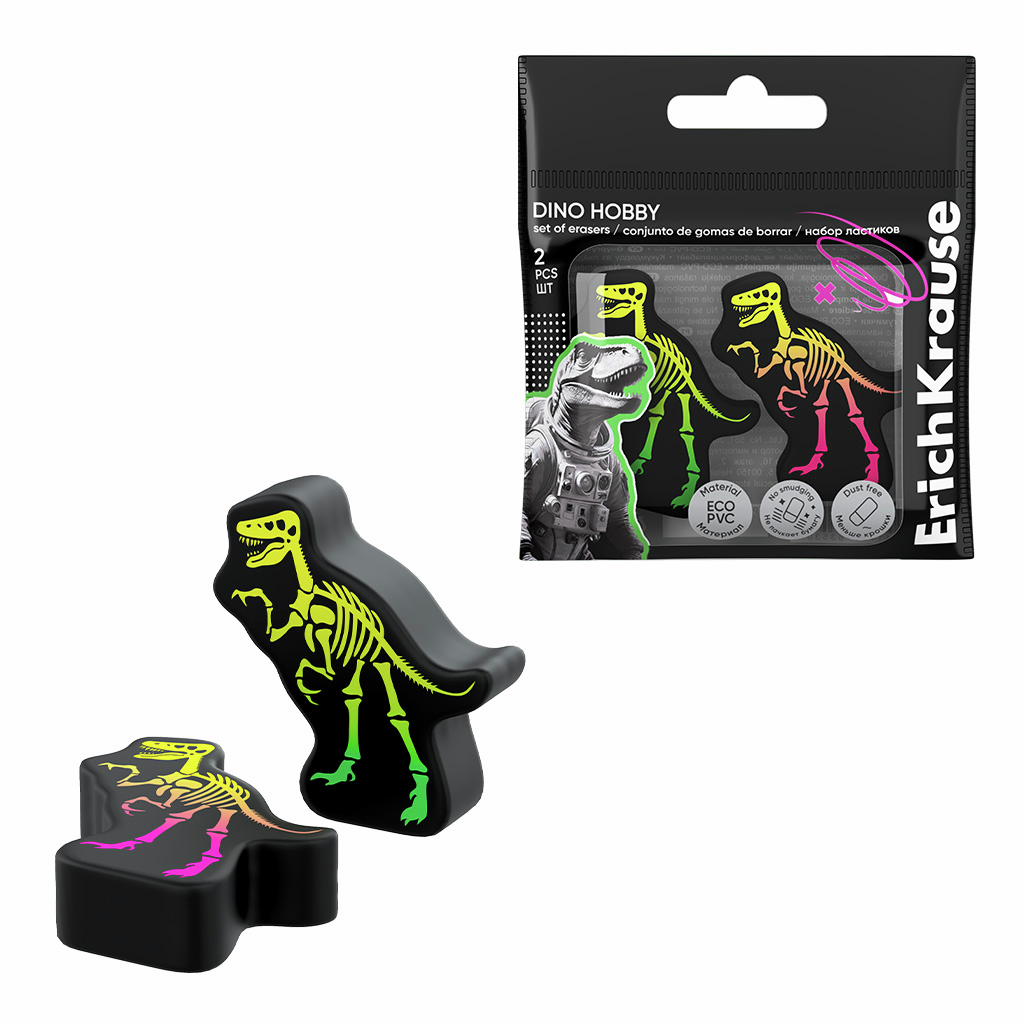 Ластик Erich Krause Dino Hobby 45 x 38.5 x 13.1мм, 2шт