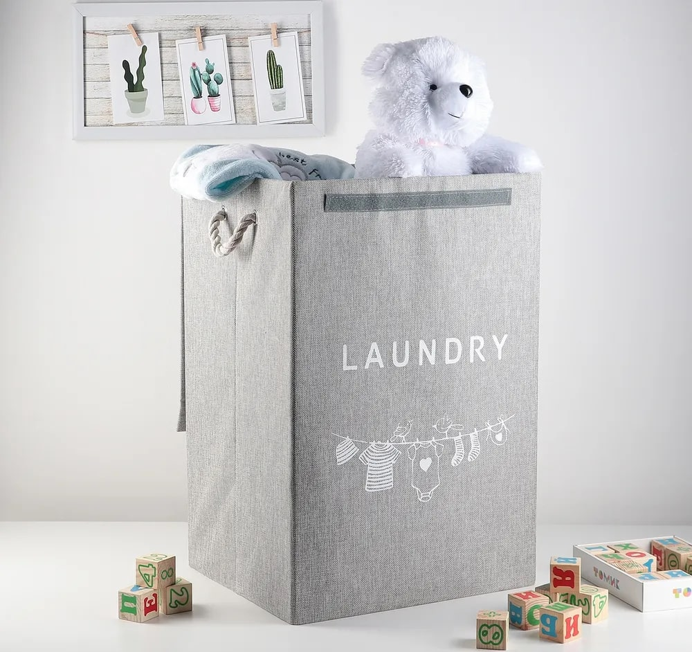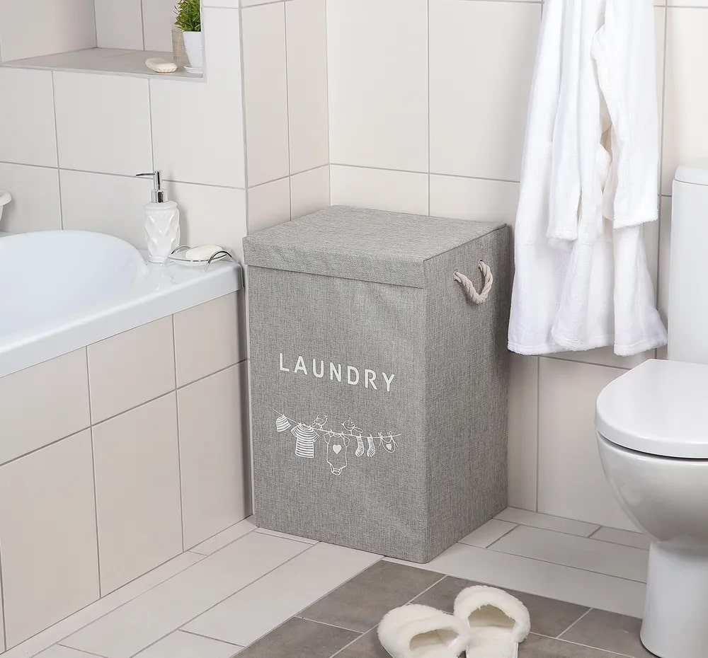 Корзина для белья Laundry Deluxe хлопковая серая, 60 х 35 х 40см