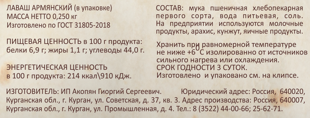 Лаваш армянский, 250г