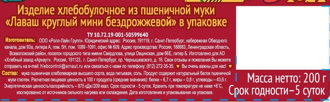 Лаваш Арнаут мини круглый бездрожжевой, 200г