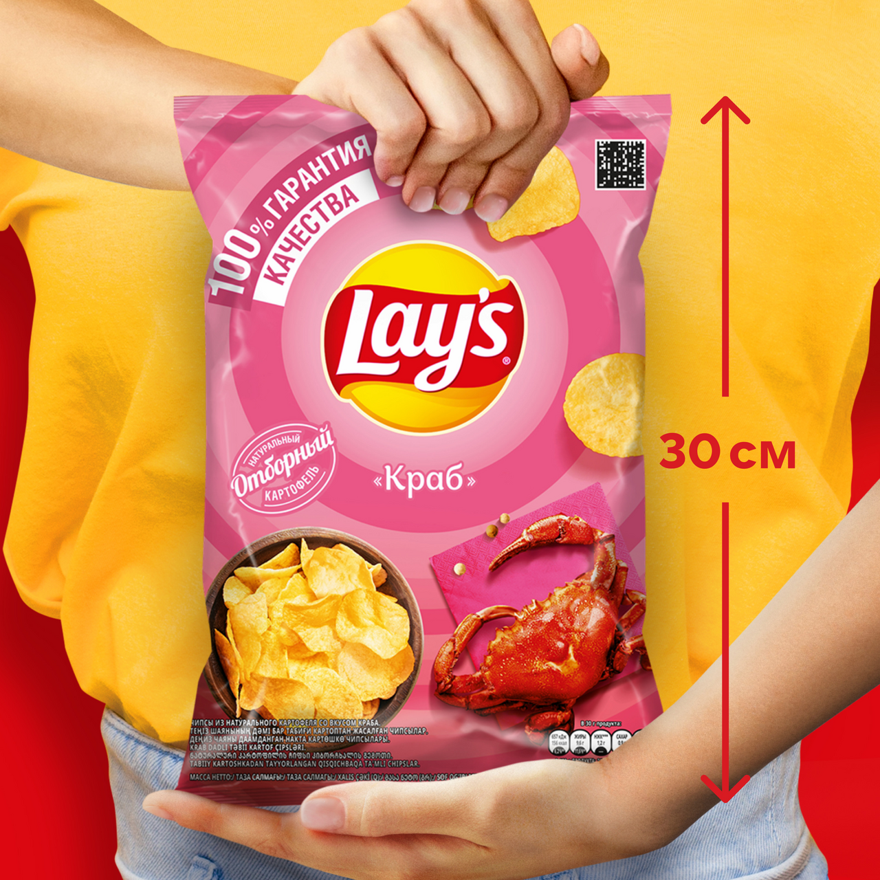 Чипсы Lays краб, 140г готовятся из отборных качественных ингредиентов. Имеют насыщенный вкус морепродуктов, приятный картофельный аромат, легкую и хрустящую структуру, которая понравится каждому, кто захочет их попробовать. Их можно подать для перекуса со сливочным соусом или предложить гостям в качестве закуски к слабоалкогольным напиткам, так и сладкой газированной воде. Чипсы можно использовать и для эффектной сервировки салатов, соусов и паштетов. В таком случае они получатся порционными. Это очень удобно — взял одну штучку и съел, не испачкав руки и посуду. Гостям понравится такой способ подачи. Большой упаковки хватит на всю компанию, ведь чипсами хочется поделиться со всеми. Они незаметно исчезают из тарелки во время просмотра интересного фильма или захватывающего футбольного матча.
