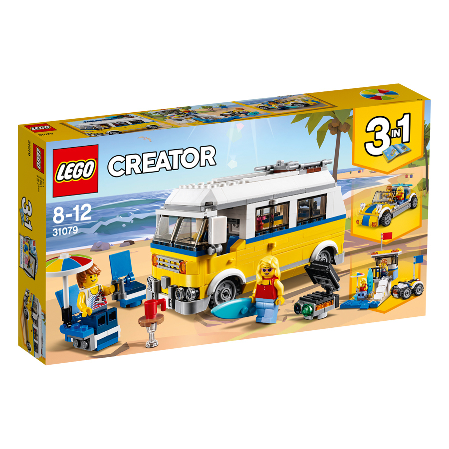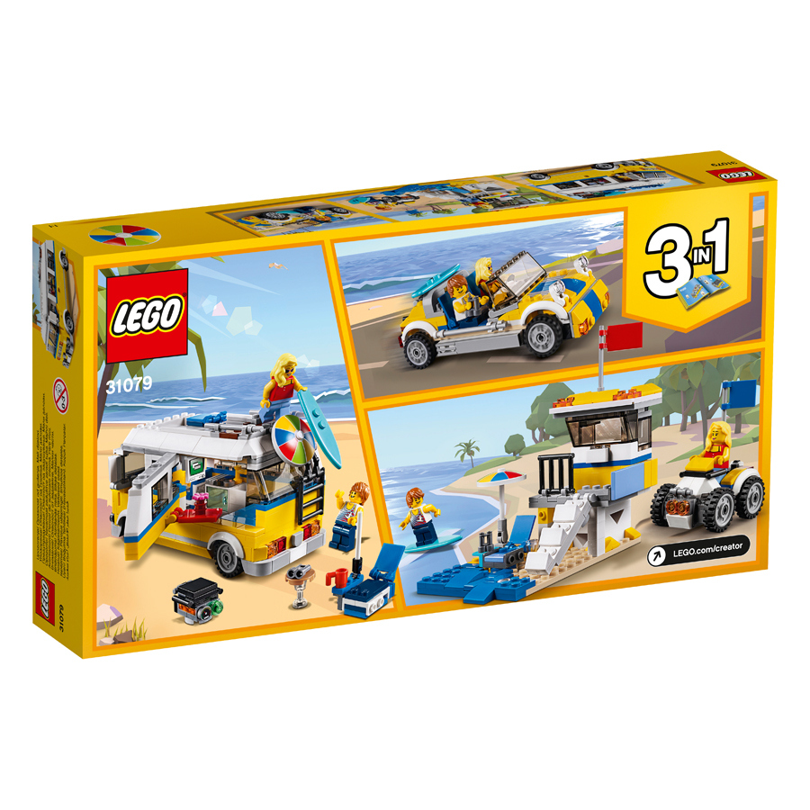 Конструктор LEGO 31079 Фургон серферов сделает отдых на море красочным и незабываемым. На вместительном желтом фургоне можно отправиться в путешествие, прихватив для этого все необходимое. Шезлонги с зонтиками поворачиваютсядля защиты от солнца. Доска для серфинга поможет покорить беспокойные волны, а если это занятие надоест, можно отправиться осматривать окружающую местность на квадроцикле или пляжном автомобиле. В наборе имеются аксессуары для комфортного отдыха: стол, бинокль, шезлонги, зонты и гриль. Маленькая мастерская Лего открылась еще в 1932 году, а сейчас в среднем компания производит около 36 миллиардов деталей в год, что приблизительно составляет 1140 единиц в секунду. Найти конструктор LEGO 31079 Фургон серферов вы всегда сможете в торговом центре METRO.Бренд: LegoСтрана: ДанияВозраст: 8-12 летМатериал: пластикГабариты упаковки: 19х36х6 см