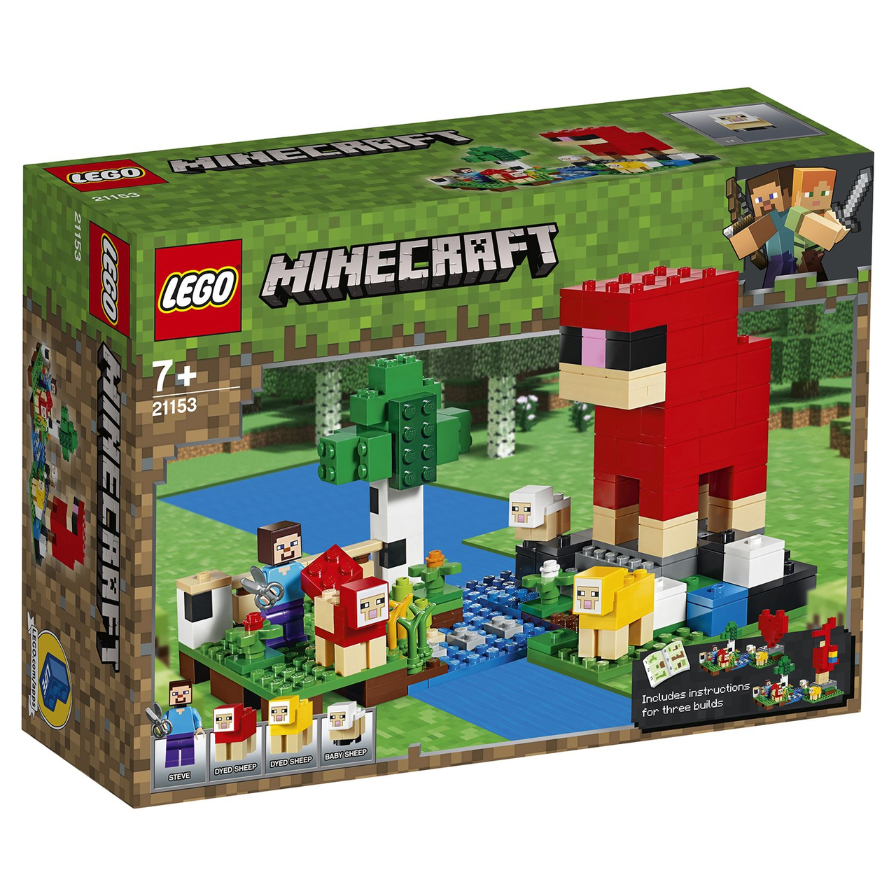 Бери в руки ножницы и отправляйся работать на Шерстяную ферму. Здесь растёт милая берёзка, а за забором течёт ручей, обложенный камнями. Выращивай пшеницу, чтобы кормить домашний скот, и цветы, из которых можно изготовить красители для шерсти. Выгуливай ягненка Minecraft™, стриги крашеных овец и собирай шерсть. Включи воображение и собери большое сердце, овцу, попугая или другое животное для своей фермы! Собирай новые приключения с удивительными наборами LEGO Minecraft!