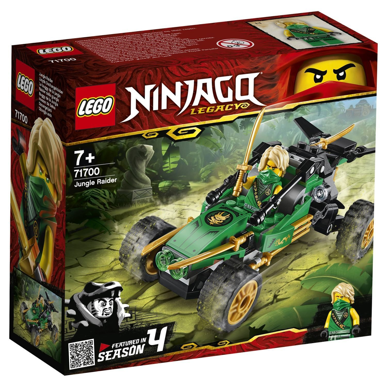 Гоняй по джунглям вместе с Лойдом на этом крутом Тропическом внедорожнике! Воссоздай легендарные битвы из Турнира стихий NINJAGO, в которых твой герой-ниндзя сразится со своими могущественными врагами. Благодаря мощной встроенной подвеске и большим резиновым шинам Ллойд может легко проехать на этом внедорожнике по джунглям. Прыгай в кабину и приготовься к бою!