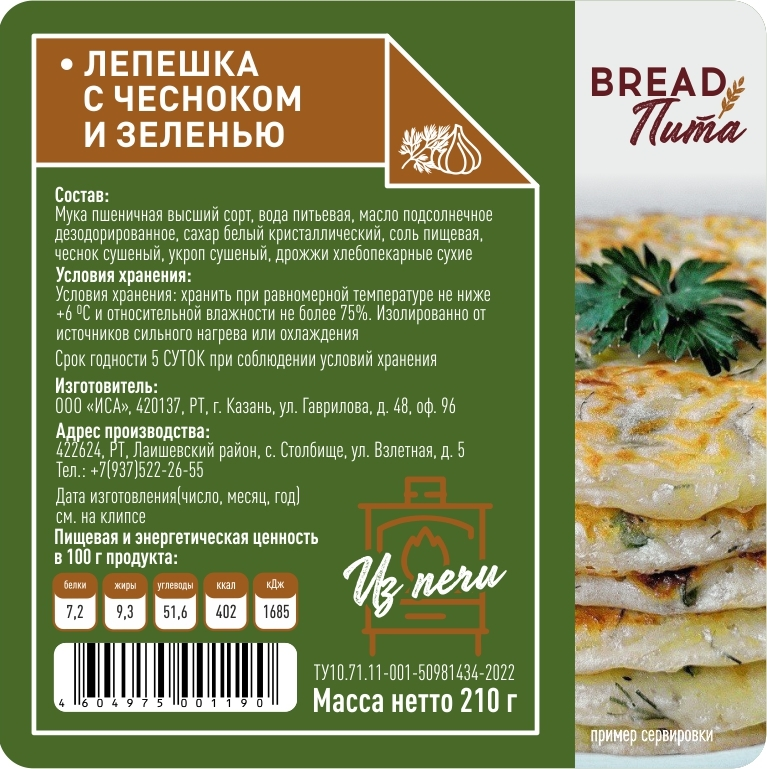 Лепешка BreadПита с чесноком и зеленью, 210г