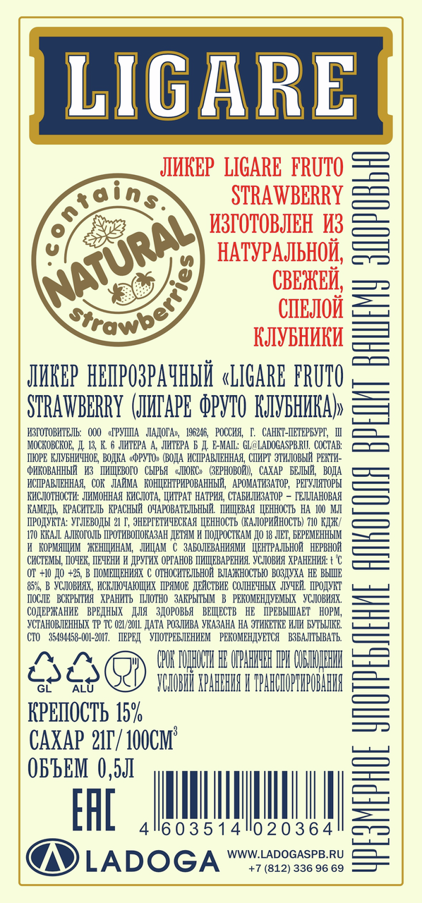 Ликер Ligare Fruto клубника, 0.5л