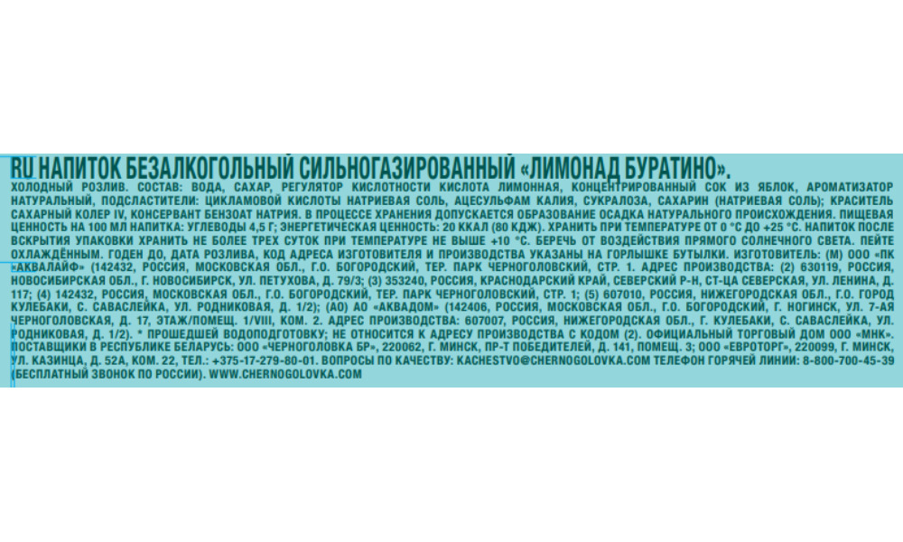 Буратино от Черноголовки – конфетный вкус в линейке легендарных лимонадов. Карамельная сладость поднимает настроение, а артезианская вода и лимонные нотки в составе освежают.