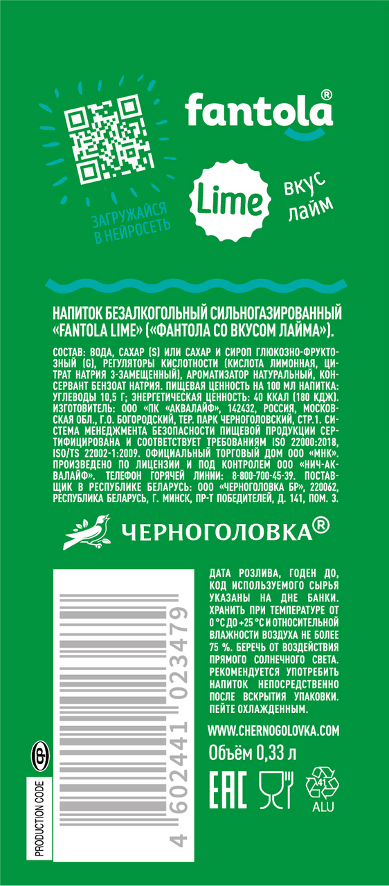 Лимонад Fantola Lime, 330мл