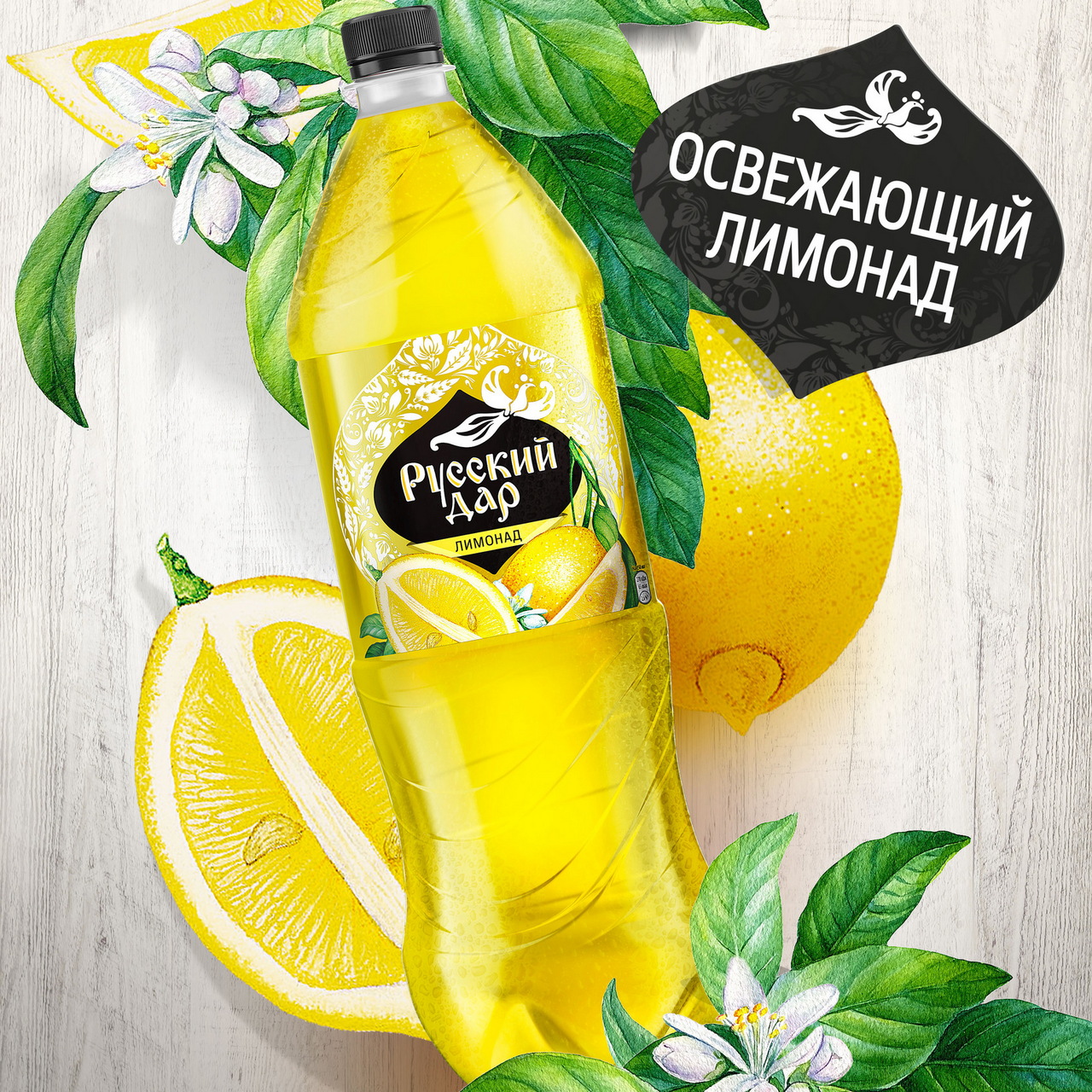 Помните, каким вкусным в детстве был лимонад? Русский Дар Лимонад это всем знакомый вкус лимонной газировки из детства. Этот классический напиток обожают и мамы с папами, и даже дедушки с бабушками! Его традиционный вкус с нотками лимона отлично утоляет жажду и освежает в жаркий день.Попробуйте газированный напиток Лимонад Русский Дар и другие проверенные годами вкусы: Дюшес, Тархун и Дикая Тайга.