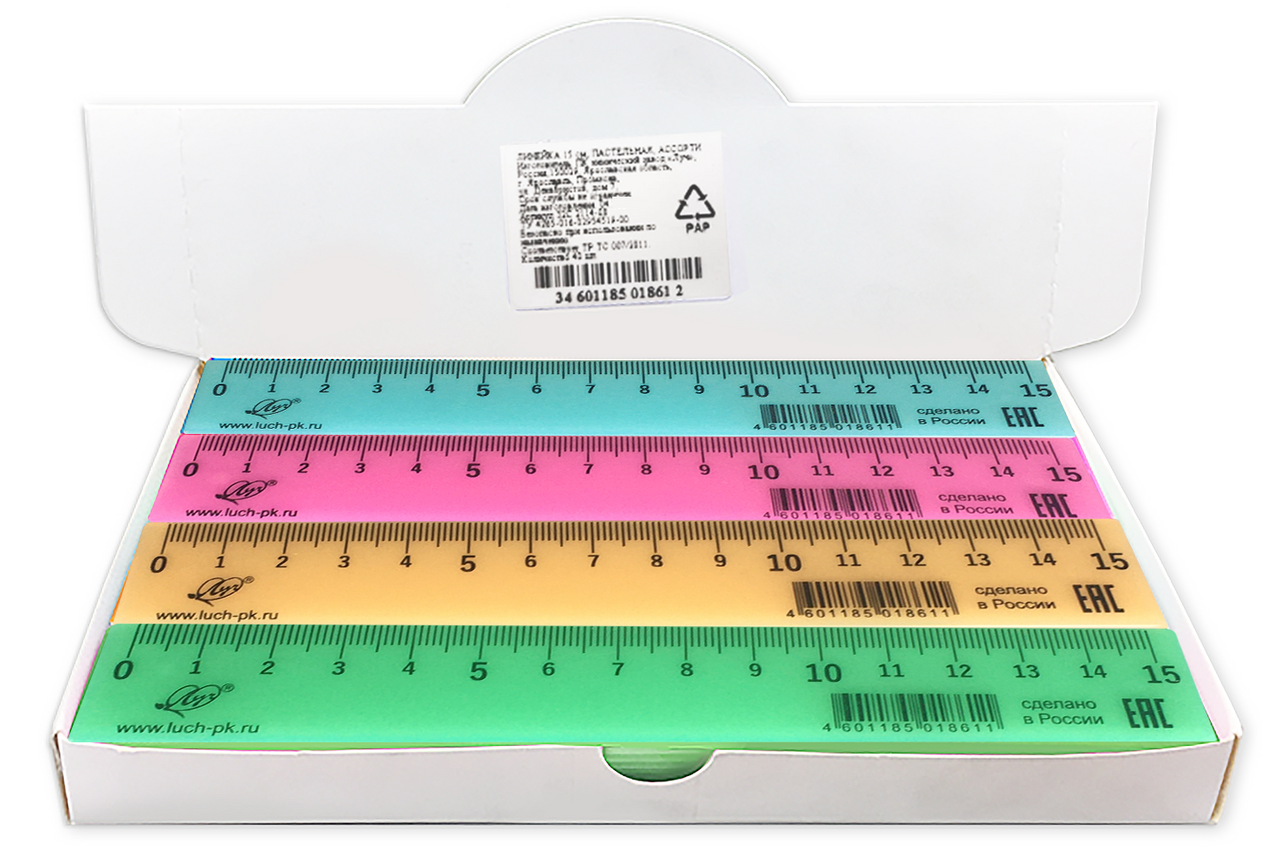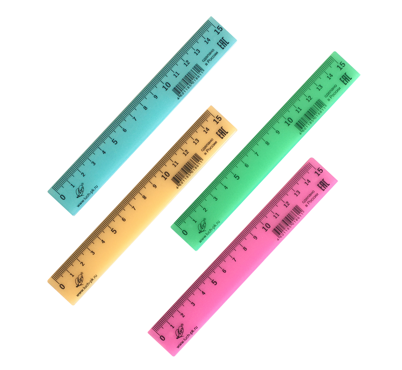 Линейка пластмассовая 15см. Линейка из высококачественного полистирола со шкалой. Особенности: Точная, четкая миллиметровая шкала; длина разметки составляет 15см. Цвет пастельный в ассортименте (розовая, оранжевая, зеленая, синяя). Не прозрачная.