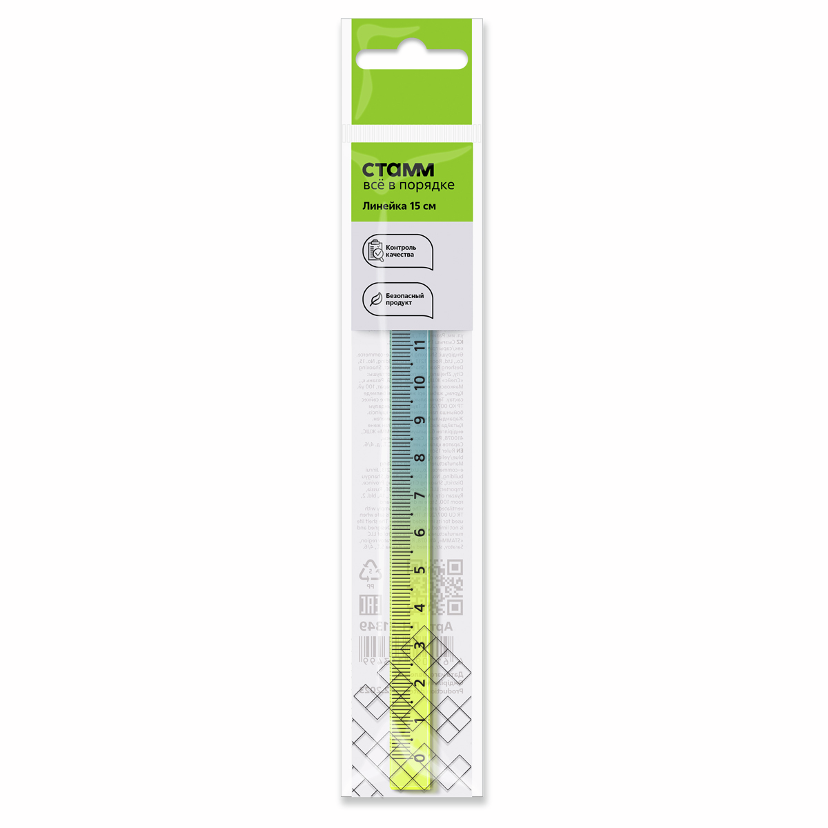 Линейка Стамм четырехгранная голубая-желтая, 15см