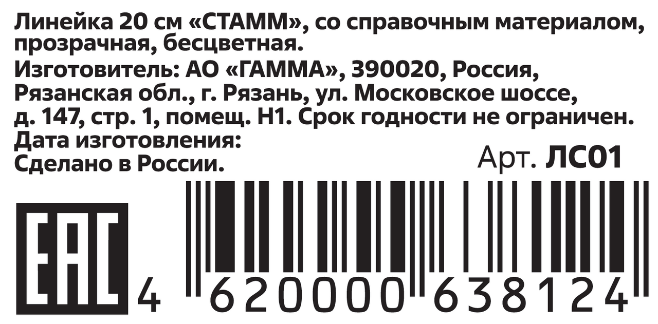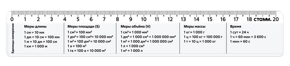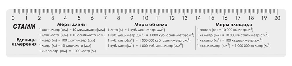 Линейка Стамм Единицы измерения со справочным материалом, 20см