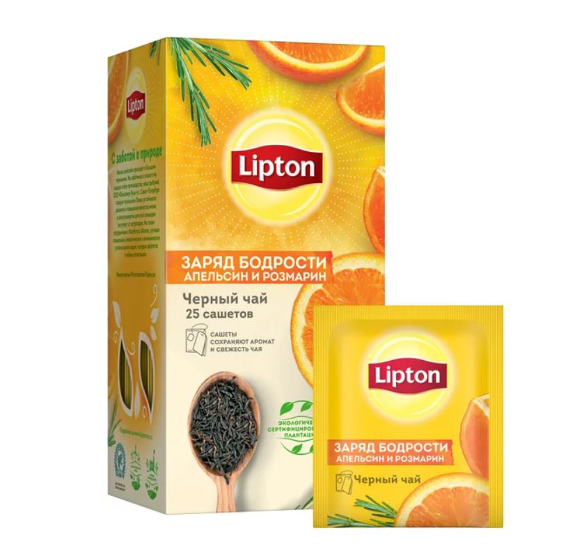 Чай Lipton заряд бодрости черный с апельсином и листьями розмарина, 25х1,5г