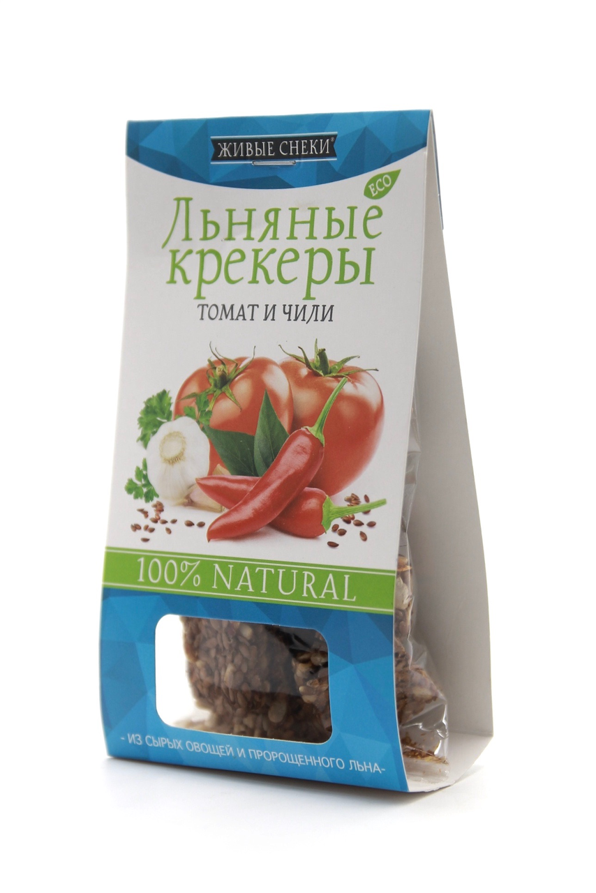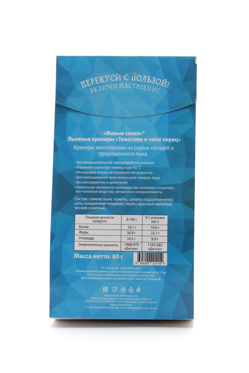 Льняные крекеры Живые снеки Томат и чили, 60г