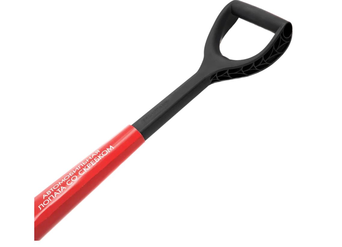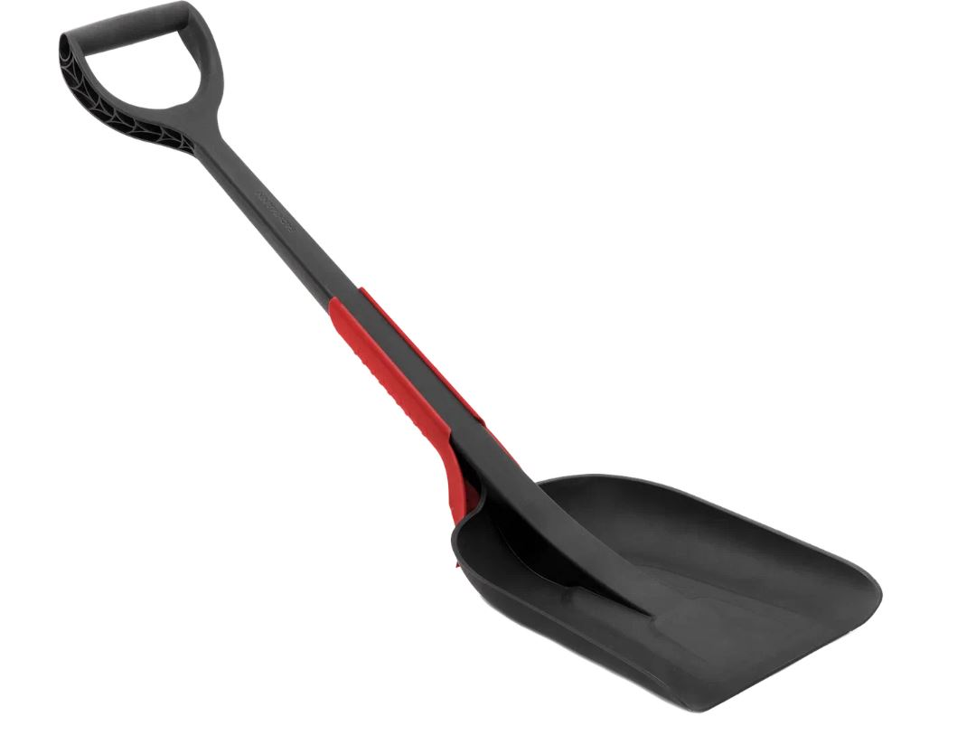Лопата автомобильная чёрная со скребком. Идеальное решение для автомобилистов, два в одном лопата и скребок. Морозоустойчивый пластик выдерживает до -50С. Прочная и удобная ручка. Легкая и эргономичная лопата для уборки снега, подходит для хранения в автомобиле. Черенок с покрытием Soft touch. Ковш из морозостойкого пластика. Алюминиевая планка на ковше повышает износостойкость лопаты.
