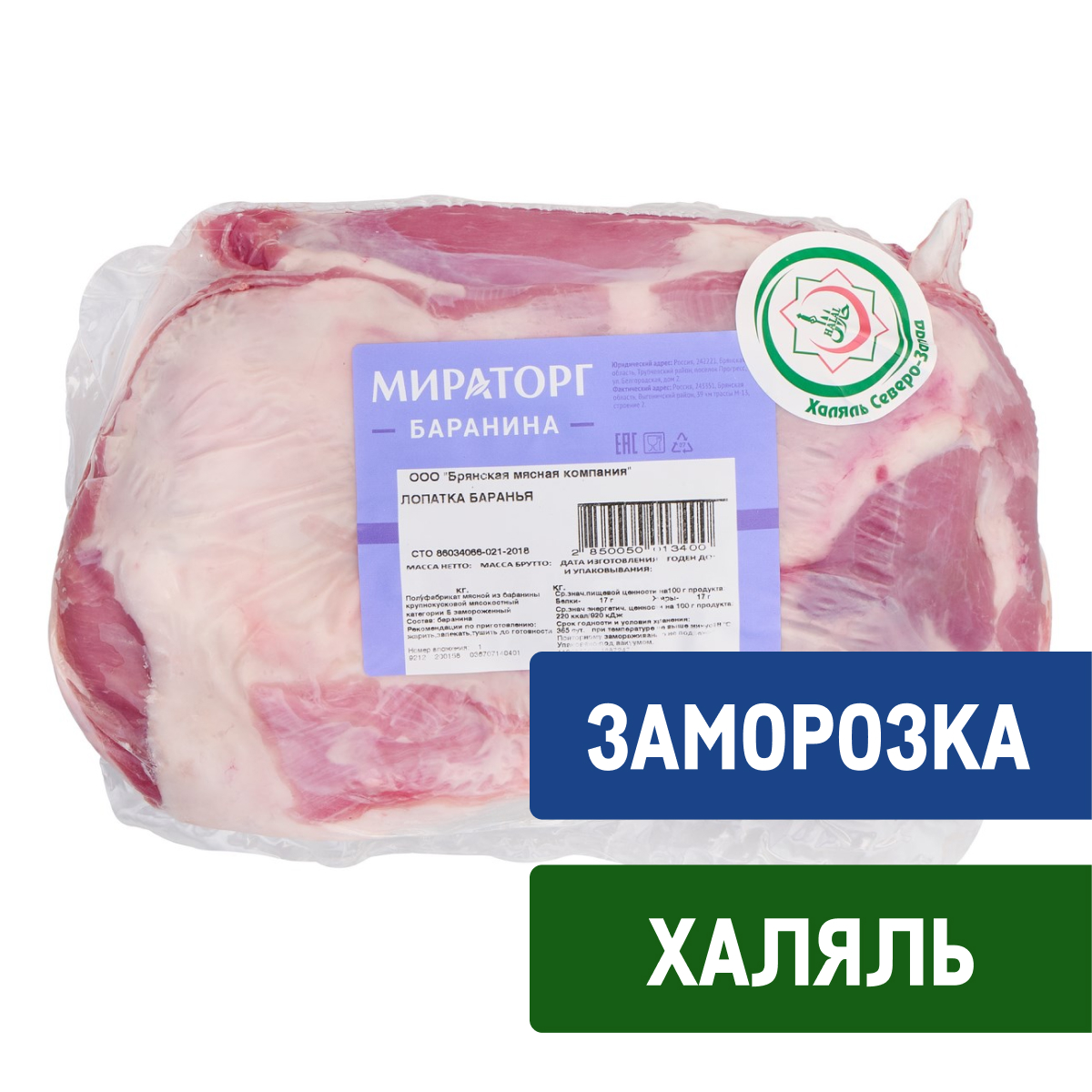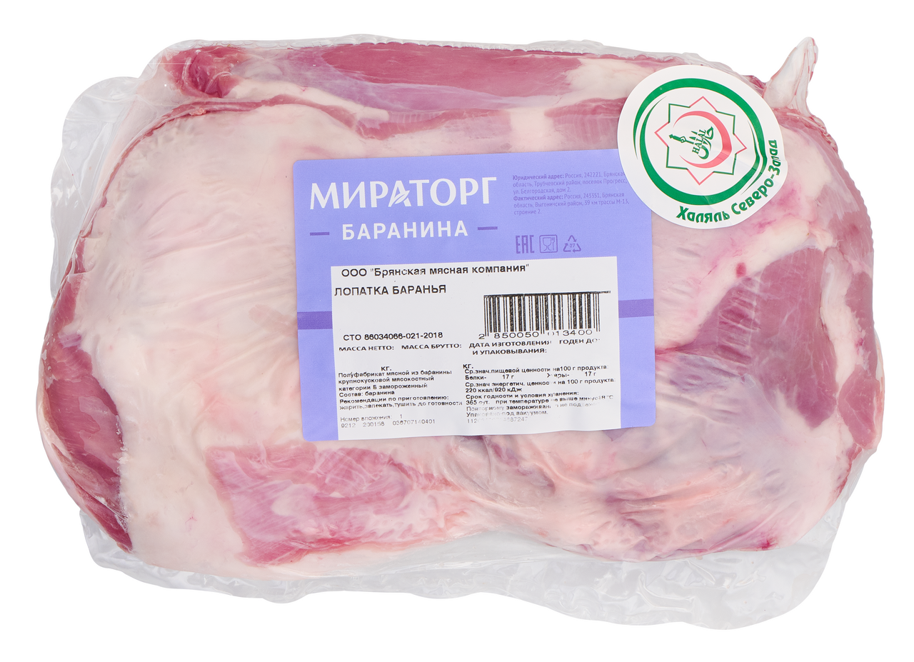 Лопатка баранья Мираторг Халяль замороженная, ~4кг