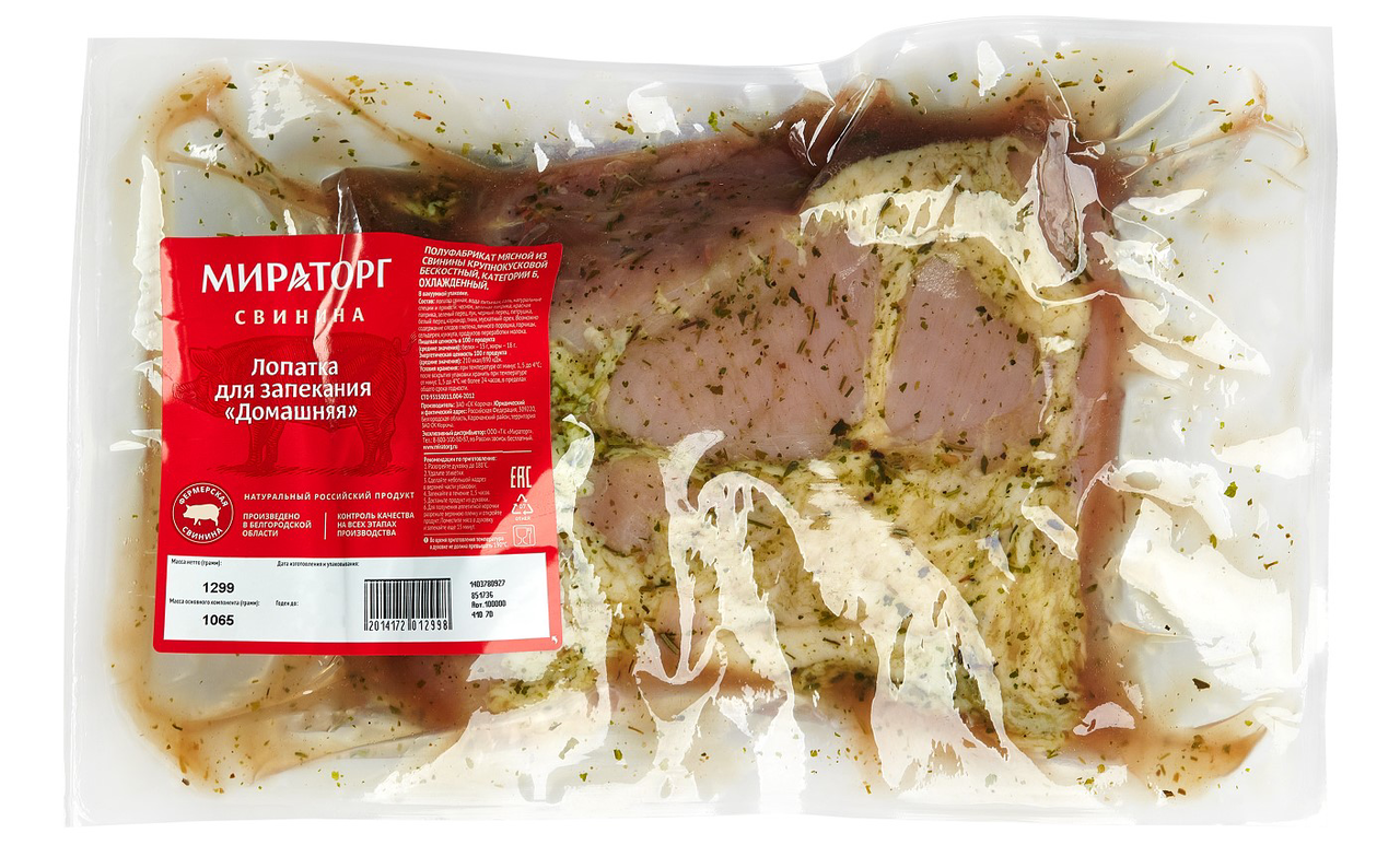Лопатка свиная Мираторг Домашняя для запекания охлажденная ~1,3 кг
