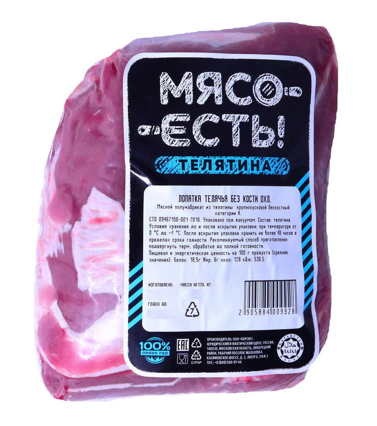 Лопатка телячья Мясо есть! без кости охлажденная вакуумная упаковка выделяется из мышц, отделенных от лопаточной и плечевой кости. Постное, умеренно жесткое мясо используется в кулинарии для тушения и отваривания, а также обжаривания на гриле, мангале, открытом огне. Филе лопаточной части подходит для тартара, харчо, мясной солянки, говядины по-строгановски или по-бургундски, гуляша. Ее вкус хорошо оттеняют бульоны, печеные овощи, болоньезе и сыры. Лопатка в виде вырезки обладает насыщенным розовым цветом и мраморным рисунком. Она обогащает организм полезными витаминами и минералами. Регулярное употребление блюд из говядины в рационе питания улучшает деятельность органов кроветворения, нервной и сердечно-сосудистой систем. Они благоприятно сказываются на состоянии кожного покрова, мышц и костей.