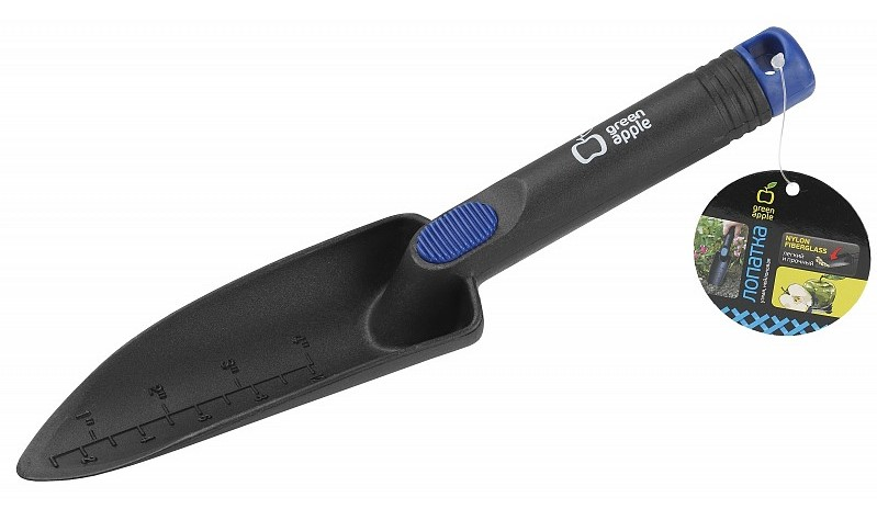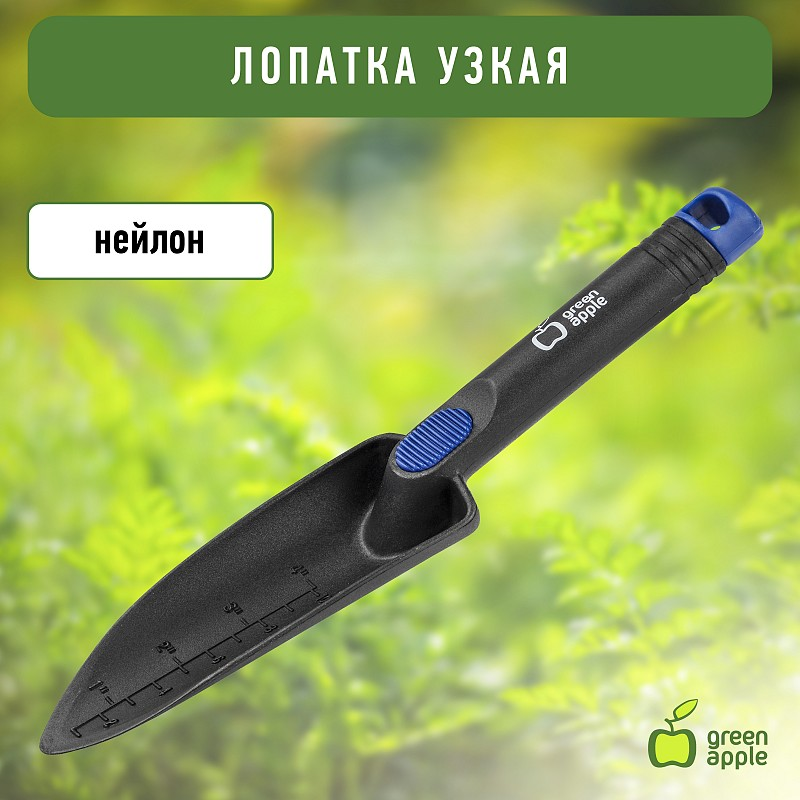 Лопатка узкая Green Apple нейлоновая используется во время работы на приусадебных участках, в садах и огородах, в теплицах. Он незаменим для ухода за домашними растениями и рассадой. Поможет при посадке и пересадке цветов. Насечки на рабочей части помогут контролировать глубину грунта, что существенно упрощает процесс и исключает случайное травмирование корневой системы. Этот инструмент изготовлен из прочного нейлона. Материал рассчитан на длительную эксплуатацию. Он устойчив к перепадам температур, морозам и негативным факторам внешней среды. Острый край легко справляется с любыми грунтами. Лопатка очень легкая и удобная. Ручка эргономичная, удобно лежит в ладони, поэтому рука не испытывает дискомфорта даже при длительной работе. На ней имеется отверстие, за которое можно вешать инструмент на крючок или на пояс. В комплекте идет чехол для хранения.