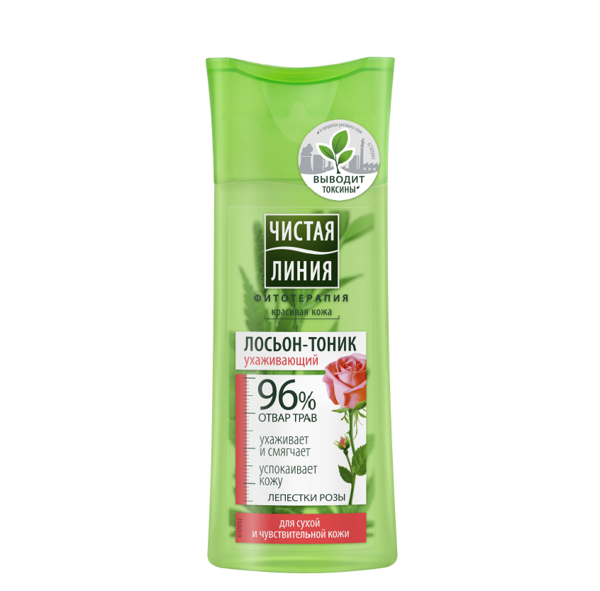 Лосьон-тоник для лица Чистая Линия Лепестки розы ухаживающий для сухой и чувствительной кожи, 100мл