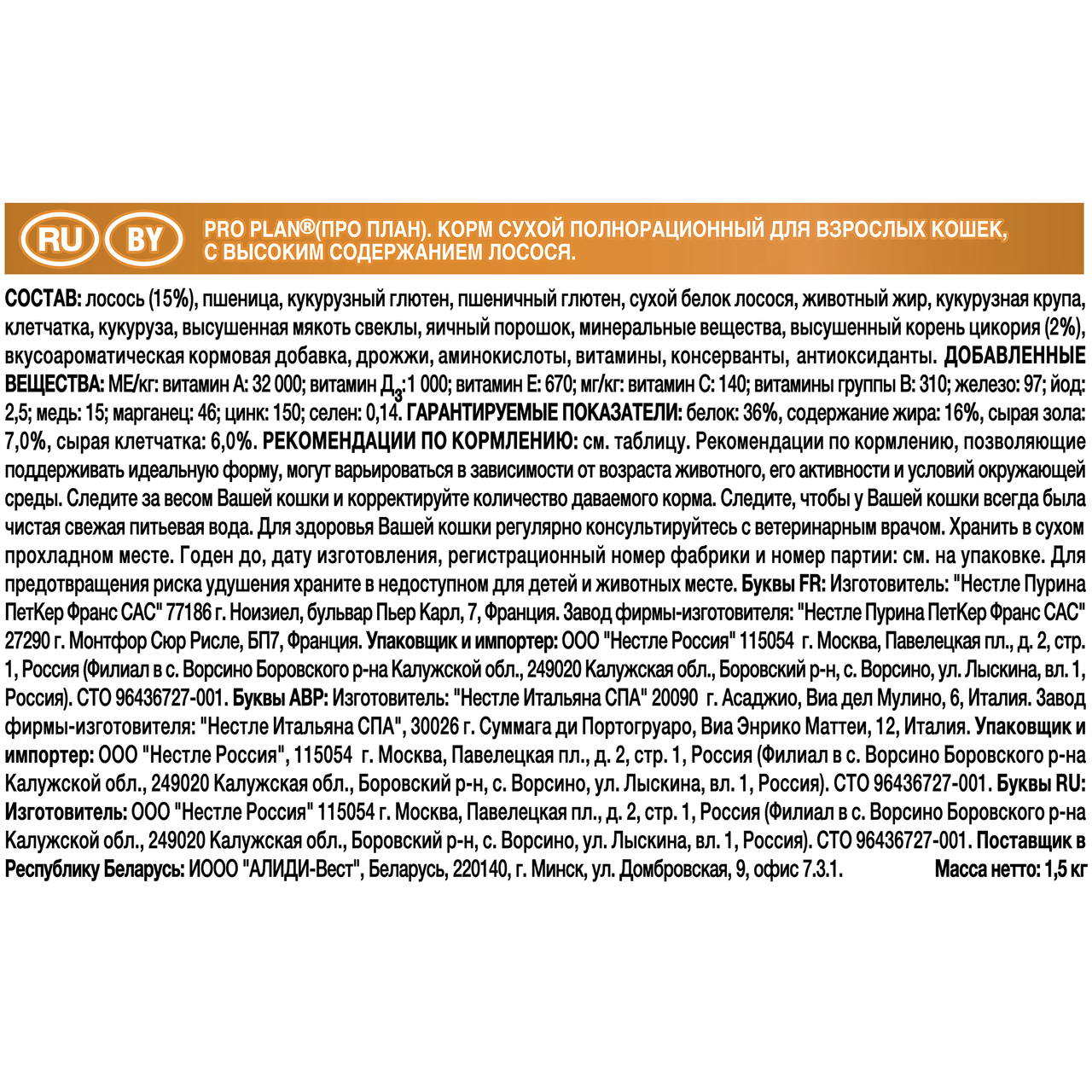 Корм сухой Pro Plan для кошек с лососем, 1.5кг