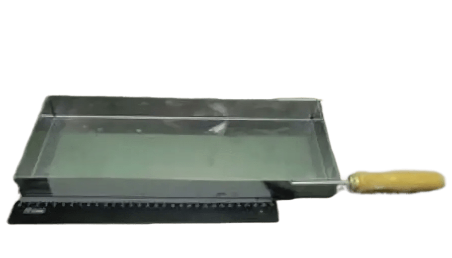 Лоток для ��гля для гриля-шашлычницы серии МК-22 изготовлен из нержавеющей стали и имеет деревянные ручки.