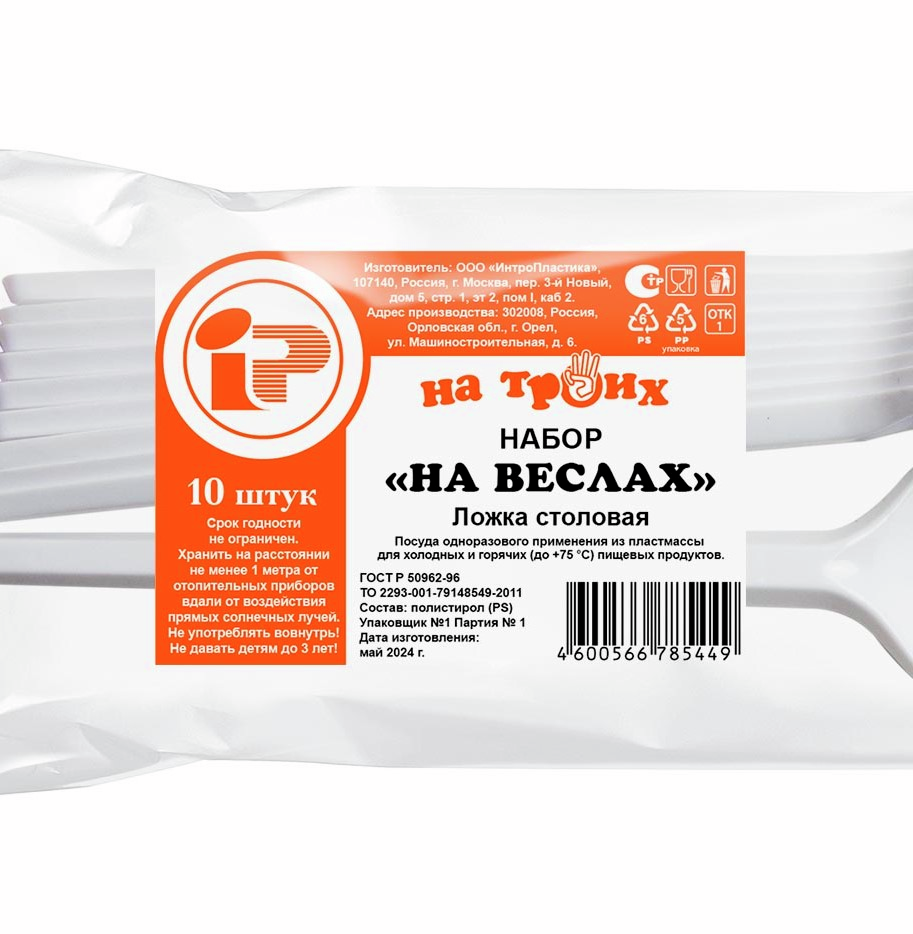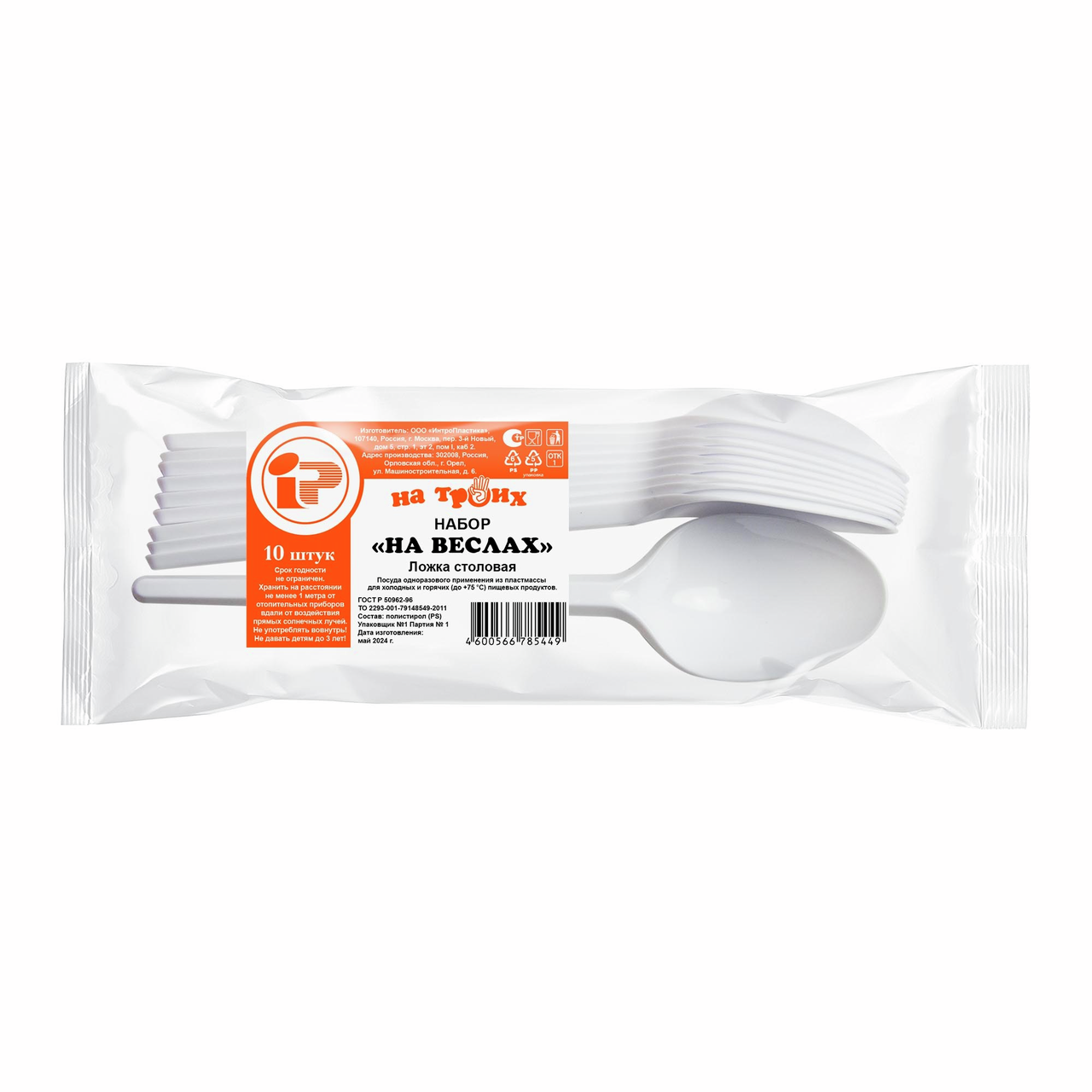 Ложка одноразовая На троих На веслах пластиковая белая, 10шт