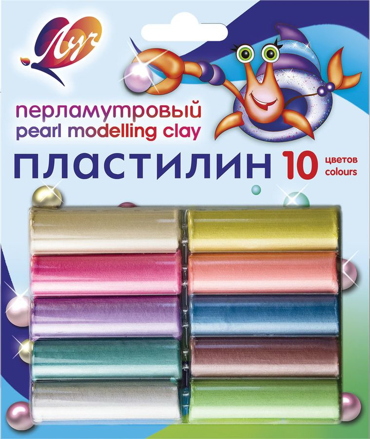 Пластилин ЛУЧ Перламутр со стеклом 10 цветов, 132 г