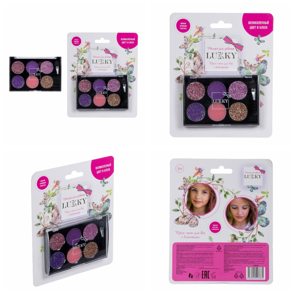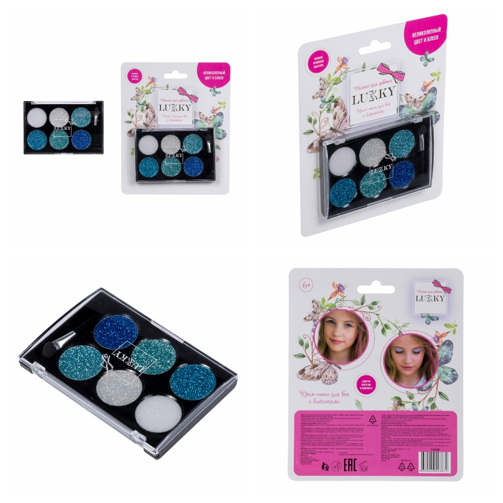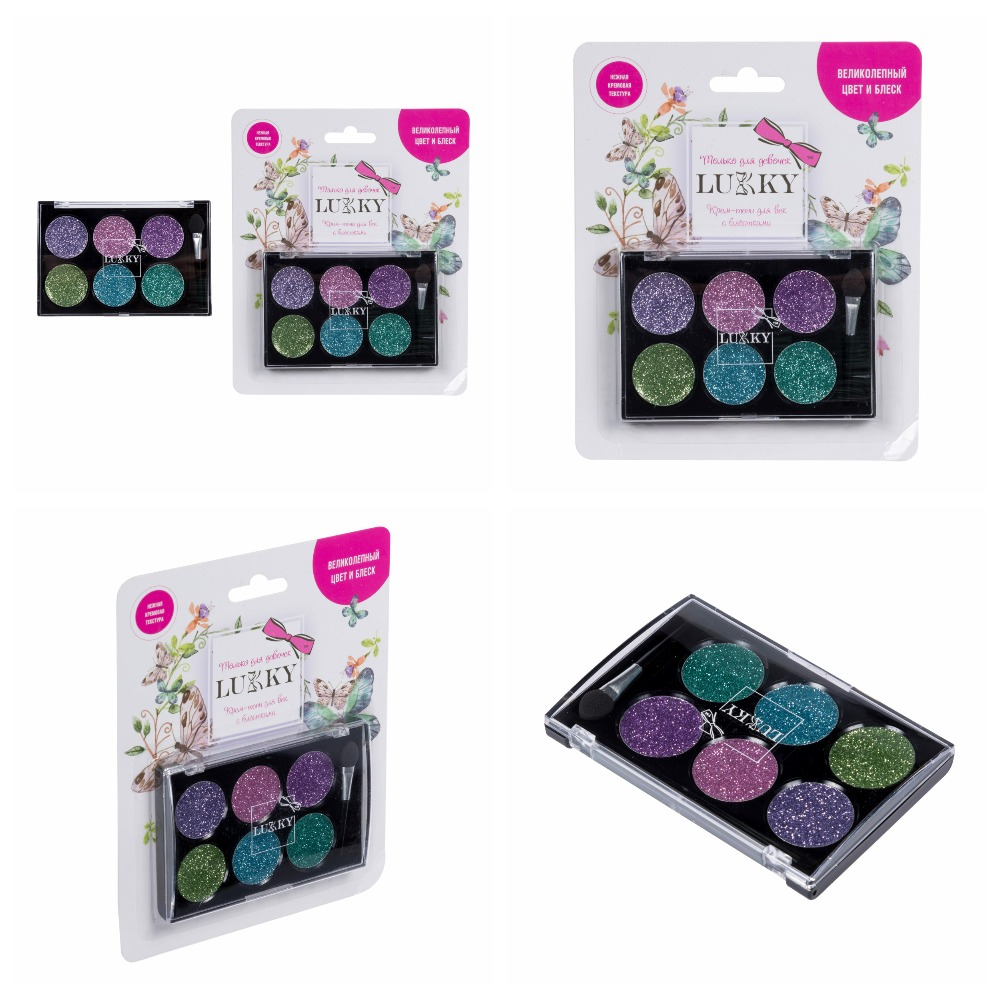 Крем-тени для век Lukky с блёстками с аппликатором 6 цветов в ассортименте