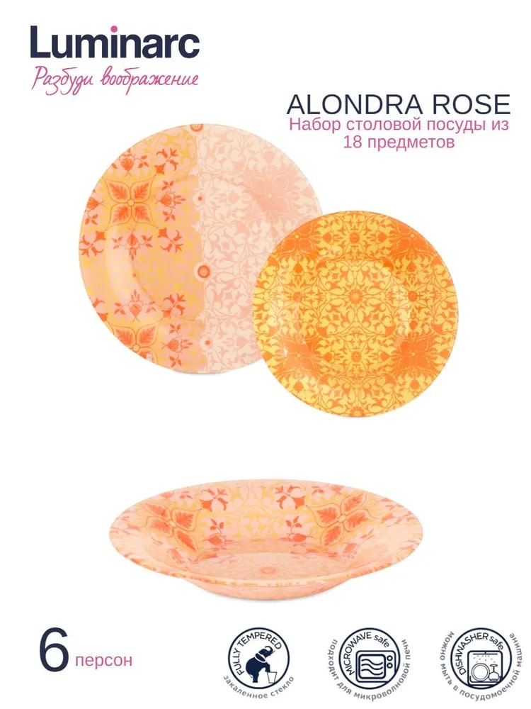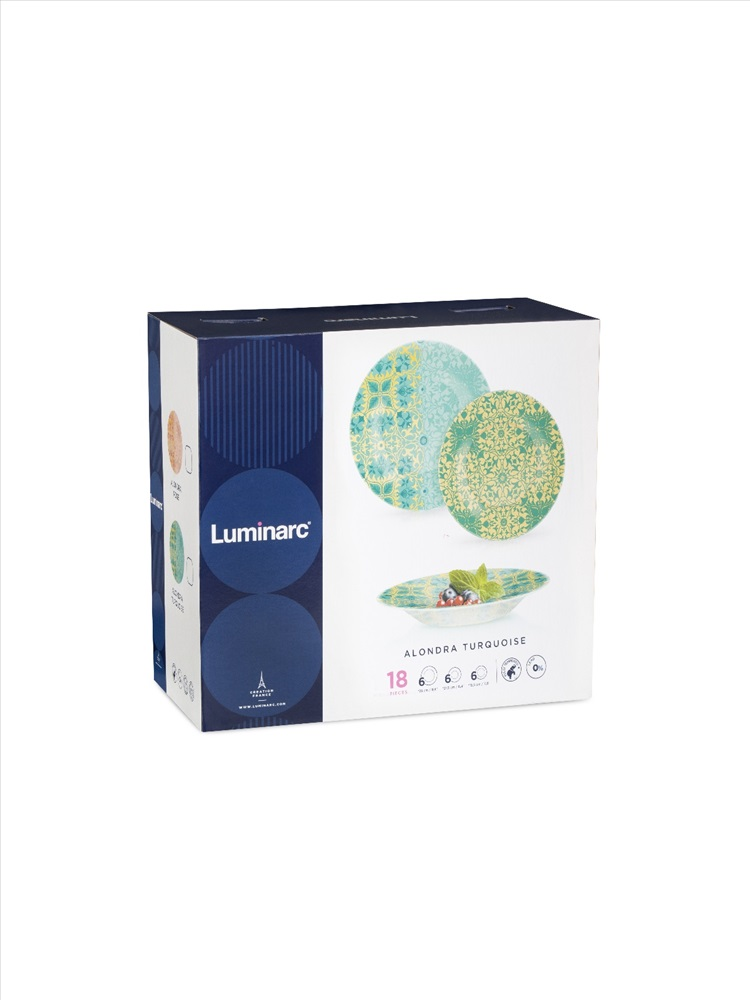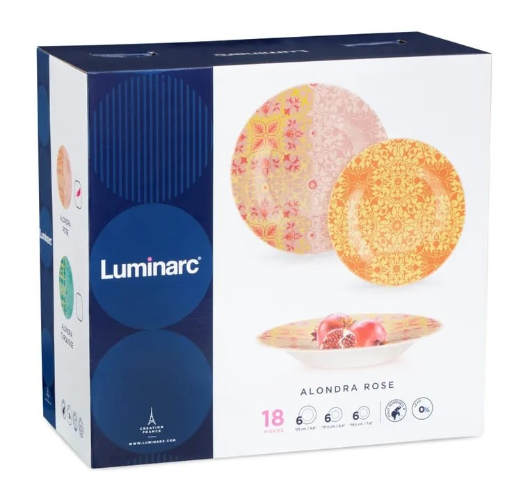 Столовые сервизы бренда Luminarc изготовлены из стекла высокого качества, которое устойчиво к появлению царапин, внешним повреждениям к высокой и низкой температуре. На стекле не остаётся пятен и разводов и материал не выделяет вредных веществ. Стекло имеет ударопрочное свойство и при падении не разбивается. В процессе использования стекло не тускнеет и не впитывает запахи. Сервизы имеют яркий и красочный дизайн, что создает настроение за обеденным столом. Предусмотрено использование в посудомоечной машине и микроволновой печи.