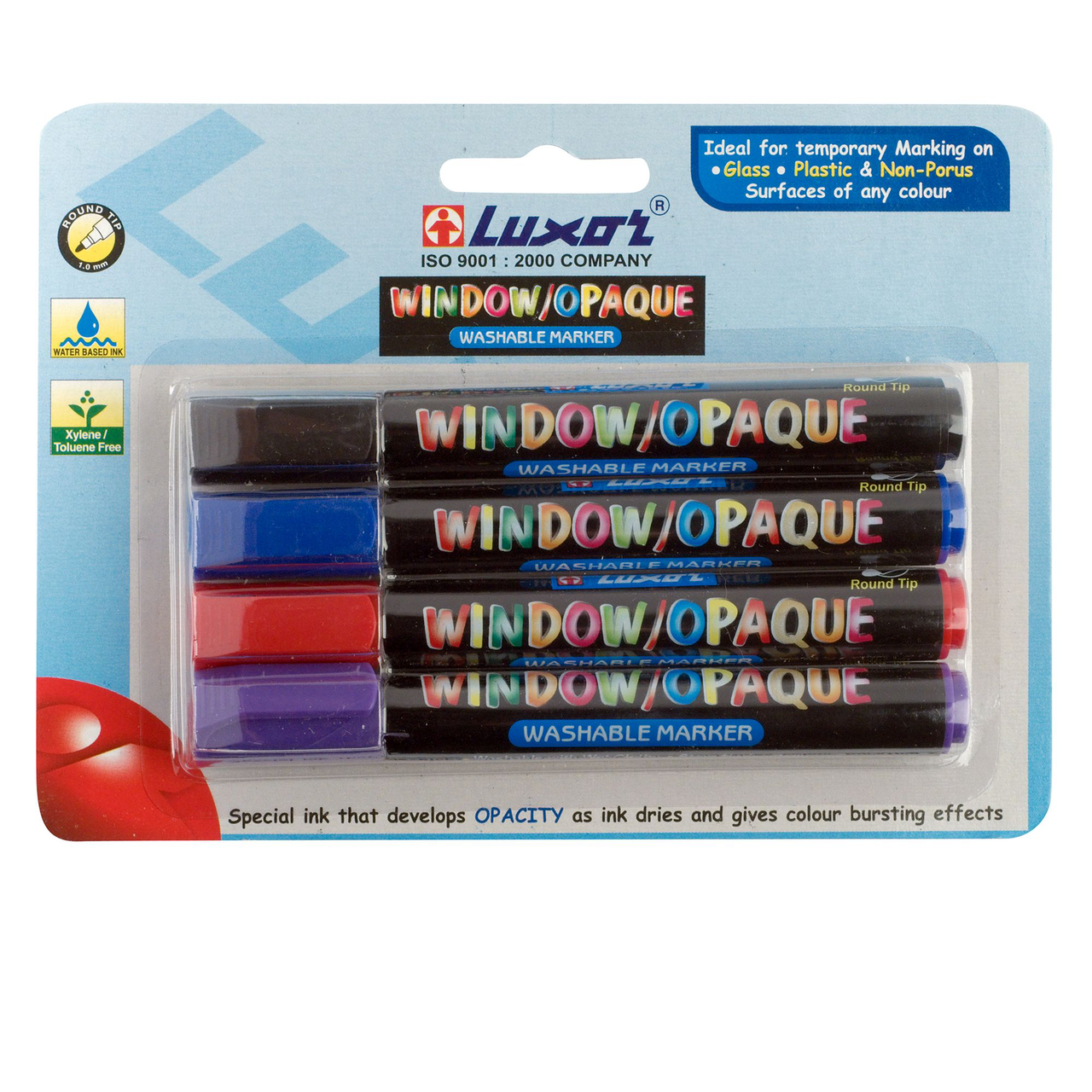 LUXOR НАБОР МАРКЕРОВ ПО СТЕКЛУ 4ШТ