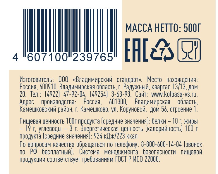 - Бренд ВЛАДИМИРСКИЙ СТАНДАРТ