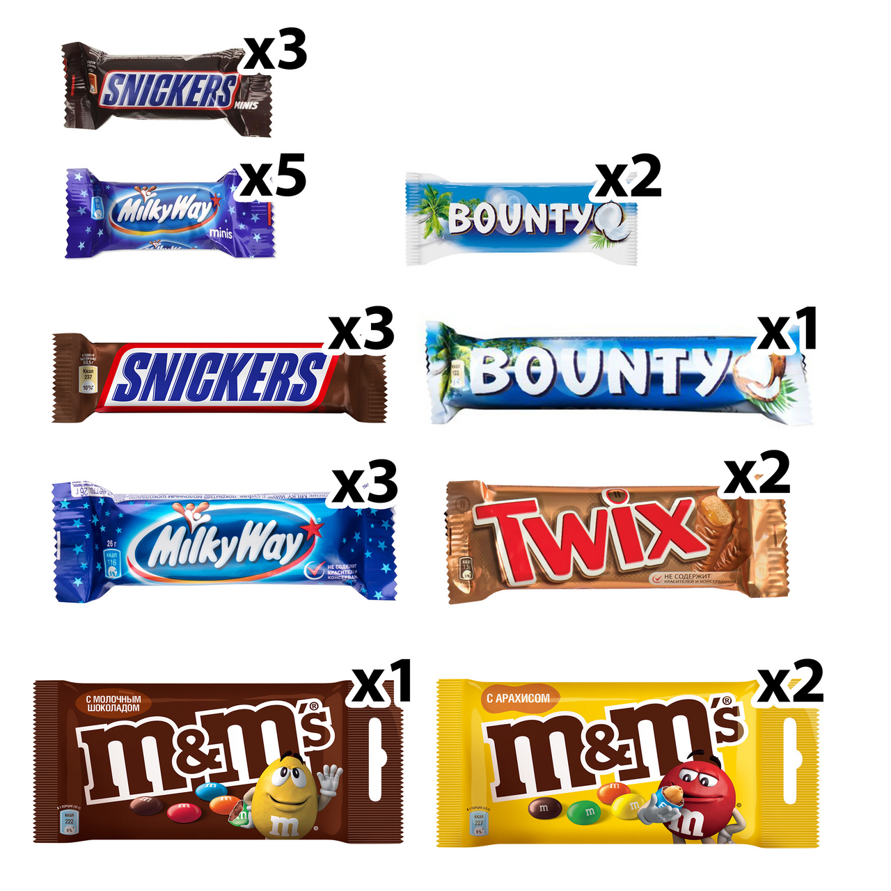 Подарочный набор M&M's & Friends Большая посылка – способ порадовать близких в наступающий Новый год и Рождество 2022. Сладкий новогодний подарок содержит в себе драже M&M's, шоколадные батончики Snickers, Twix, Bounty, Milky Way. Новогодняя подарочная упаковка (Новогодняя посылка), веселые герои M&M's, любимые сладости – отличное угощение на праздничный стол и прекрасный подарок для ребенка. M&M’s & Friends Большая посылка – отличное решение, когда нужно купить подарки для класса или группы.