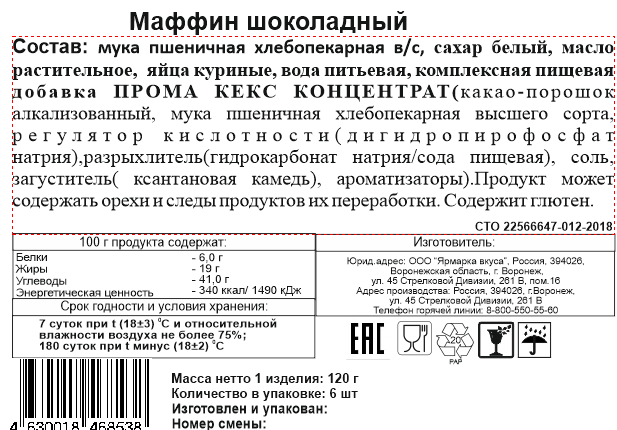Шоколадный Маффин - ароматный кекс с нежным шоколадным вкусом, не оставит равнодушным ни одного сладкоежку. Маффин приготовлен из натуральных ингредиентов без использования вредных добавок. Награжден медалью За отличное качество продукции на выставке СОУД 2021. Нежный кекс с чуть влажной консистенцией отлично подойдет в качестве завтрака, перекуса или десерта после полноценного приема пищи.