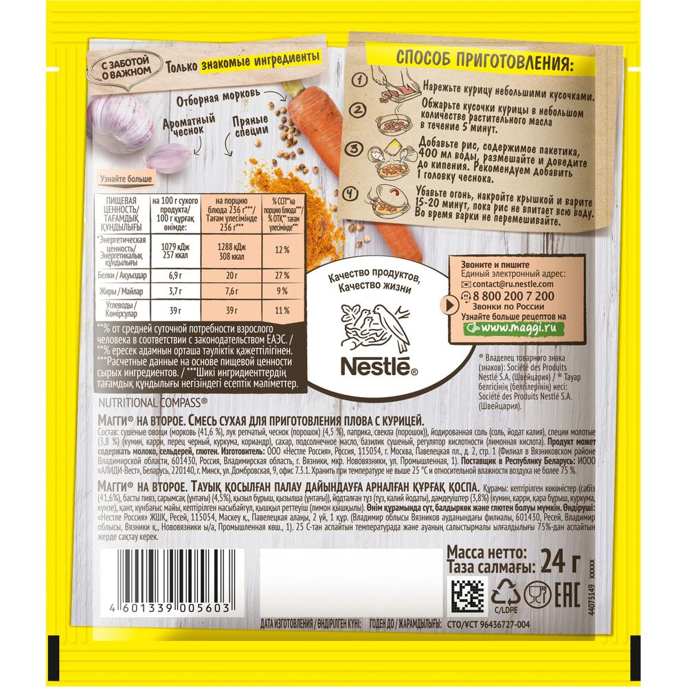 Один пакет рассчитан на 4 порции. Для приготовления потребуется: 300г курицы, 200г риса. Состав: Сушеные овощи (морковь, лук, чеснок (порошок), паприка, свекла столовая (порошок)), йодированная соль, специи и пряные травы (кумин , карри, базилик, перец черный, куркума, кориандр), сахар, подсолнечное масло, регулятор кислотности (лимонная кислота). Продукт может содержать молоко , сельдерей , глютен. Пищевая ценность: Белки: 6,4г, жиры: 3,8г, углеводы: 43г Энергетическая ценность: 1111кДж/ 264кКал Хранить при температуре не выше 25 градусов и относительной влажности воздуха не более 75% Срок хранения: 12 месяцев