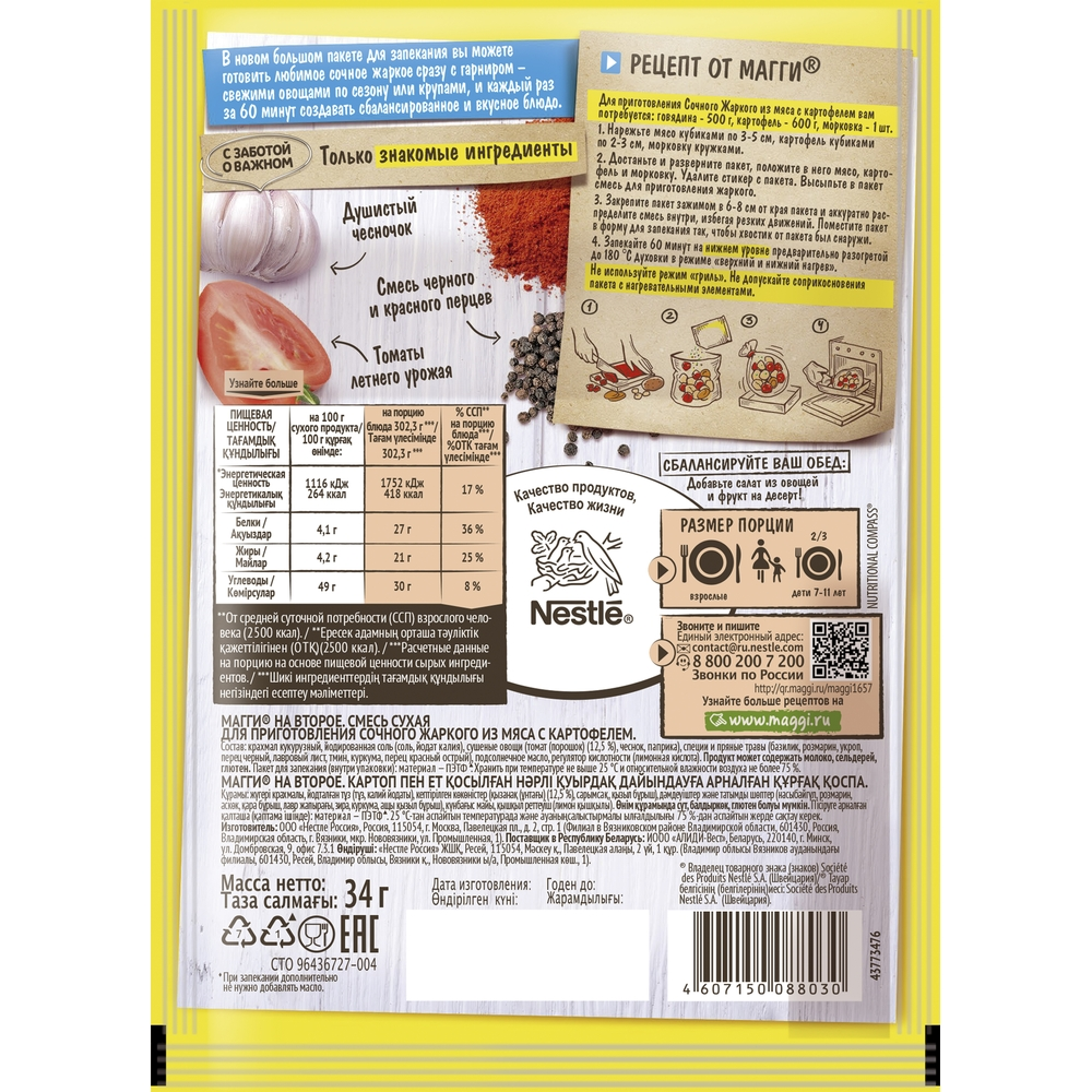 Приправа MAGGI На второе для сочного жаркого из мяса с картофелем, 34г