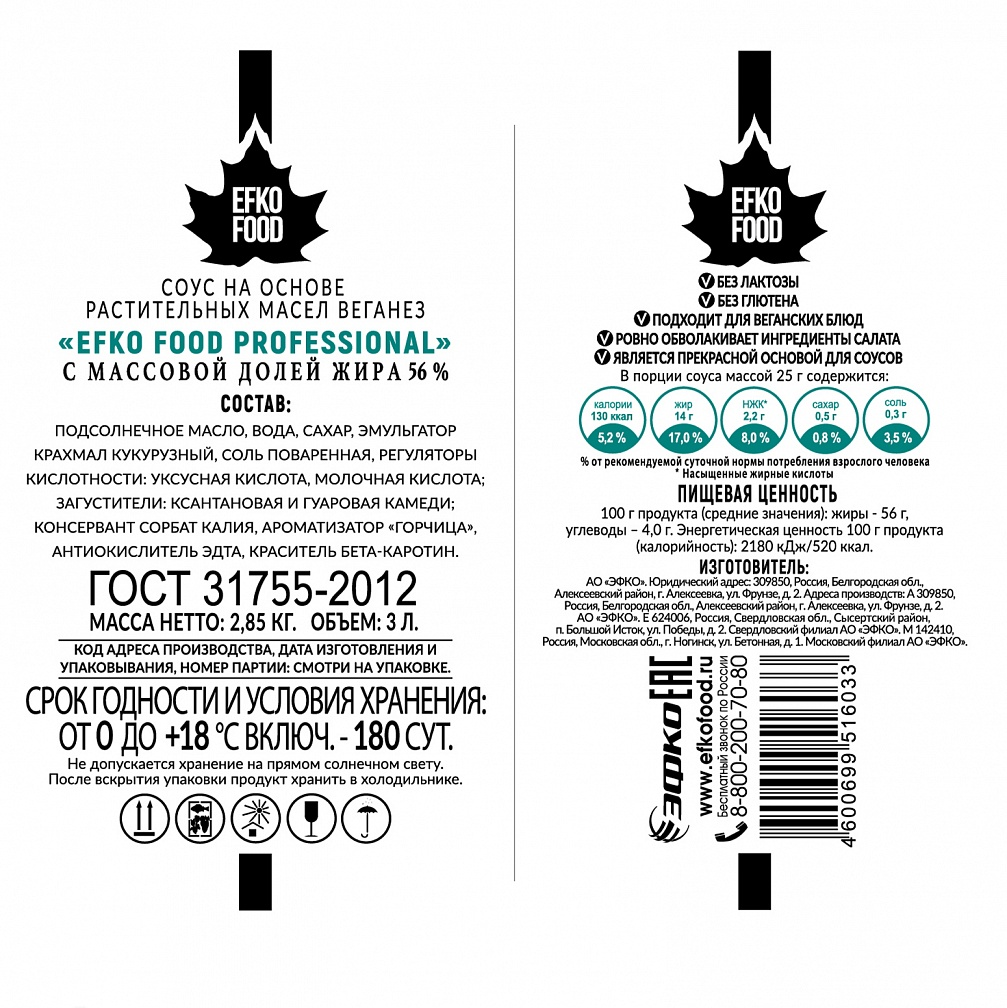 Соус на основе растительных масел Efko Food Веганез 56%, 3л