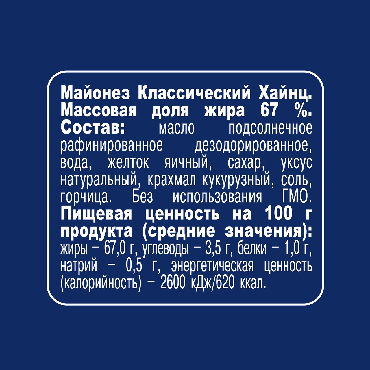 Майонез Heinz имеет приятный сливочный вкус и густую плотную консистенцию, что позволяет ему сохранять форму вне зависимости от способа приготовления. Майонез Heinz отлично подходит для заправки салатов как из отварных, так и из свежих овощей. Идеален для запекания мяса, рыбы, а также горячих суши – при нагревании вы получите яркую золотистую корочку.
