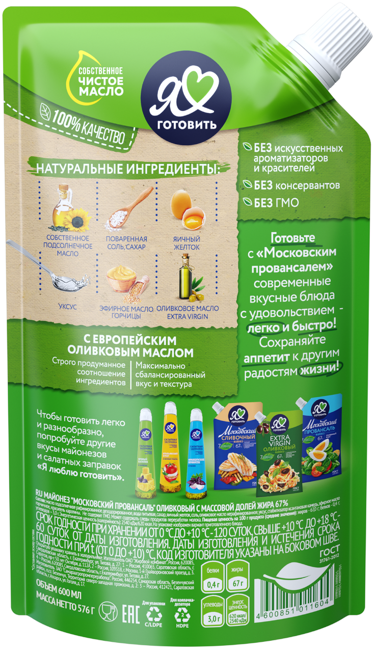 Майонез Я люблю готовить Московский провансаль Классический 67%, 600мл