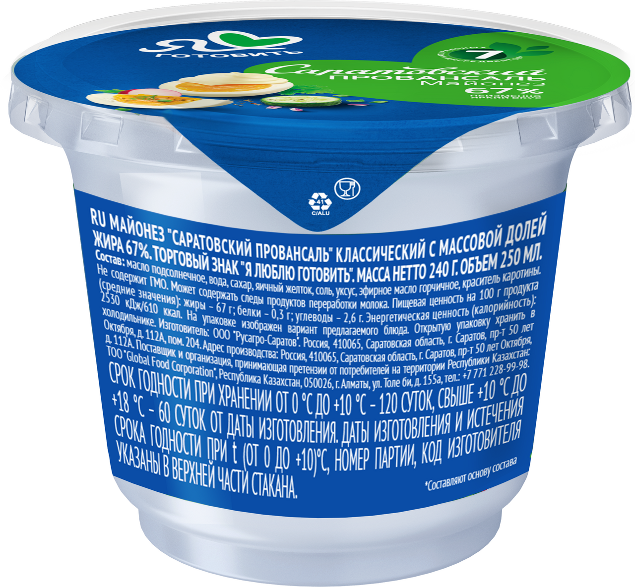 Майонез Я люблю готовить Саратовский провансаль 67%, 250мл