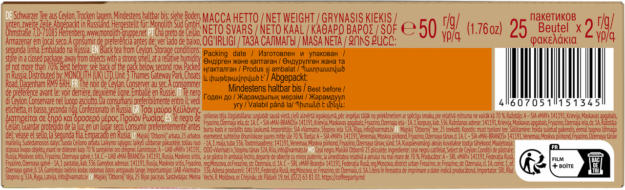 Чай Майский черный отборный 25 пакетиков (2г x 25 пак), 50г х 27 шт
