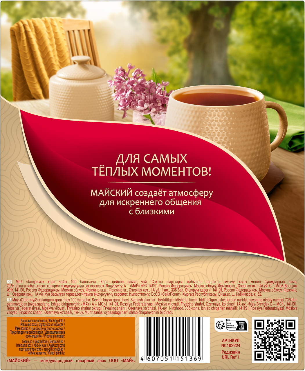 Специально отобранный на Цейлоне крупный чайный лист весеннего сбора и бережная скрутка делают напиток особенно нежным, раскрывая все богатство вкуса и аромата классического черного чая МАЙСКИЙ: терпкий и полный, с ярким насыщенным ароматом и фруктовыми нотами. Обладает золотисто-красноватым цветом настоя. Двухкамерный пакетик обеспечивает максимально быстрое и качественное заваривание! Наслаждайтесь его сбалансированным вкусом каждый день.