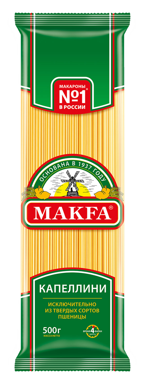 Вермишель MAKFA длинные капеллини 500 г – это разновидность традиционных итальянских макарон спагетти. Они давно завоевали популярность на российском рынке. Макаронные изделия этого бренда отличаются отменным качеством. Для их изготовления производитель использует лучшие твердые сорта пшеницы, поэтому они не развариваются, не ломаются, хорошо сохраняют форму и могут быть использованы для приготовления самых разных блюд. При этом они чрезвычайно вкусны и полезны. Вермишель каппелини подаются в качестве гарнира к мясу, птице, рыбе, из нее делают пасту. Она прекрасно сочетается с оливковым маслом, соусами, морепродуктами, может использоваться при приготовлении первых и вторых блюд, запеканок, молочных супов. Подчеркнуть и сбалансировать вкус этих макарон помогут сыры твердых и мягких сортов. Приобрести вермишель MAKFA длинные капеллини 500 г можно в торговом центре METRO.Бренд: Makfa.Производитель: Макфа.Страна: Россия.Тип продукта: спагетти.Разновидность: длинные.Вид муки: пшеничная.Группа: А.Сорт: высший.Особенности состава: из твёрдых сортов пшеницы, без ГМО, без искусственных ароматизаторов, без добавок.Вид упаковки: пластиковый пакет.Вес: 500 г.Условия хранения: при температуре от +10С до +25С.Срок хранения: 24 месяца.Состав: мука из твердой пшеницы для макаронных изделий высшего сорта, вода питьевая.Пищевая ценность на 100 г: белки 12,5 г, жиры 1,3 г, углеводы 70,5 г, калорийность 344 ккал.